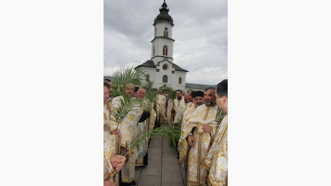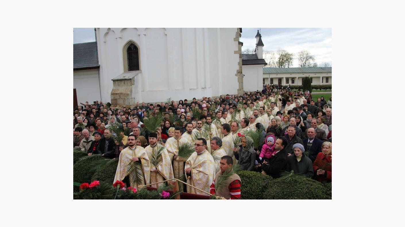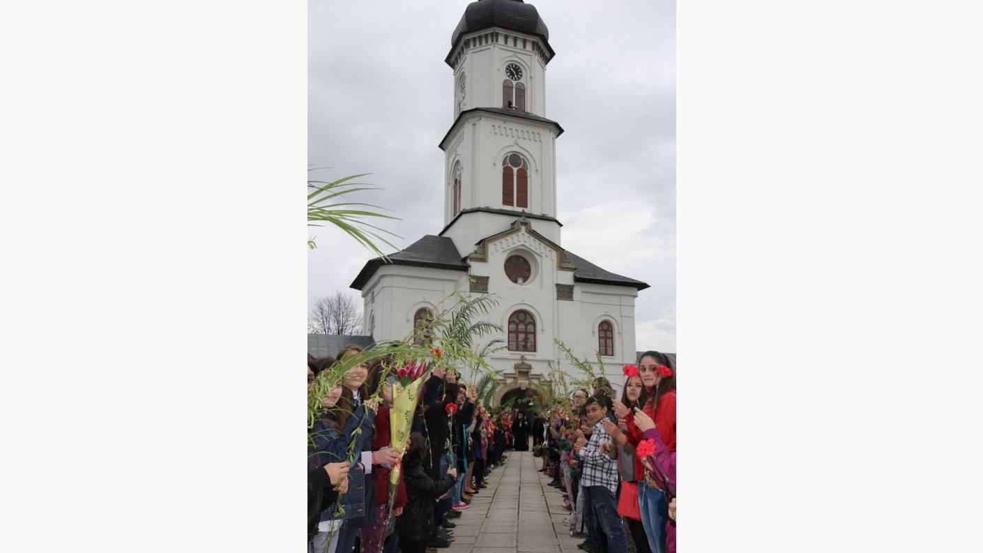 Purtând în mâini stâlpări, sute de credincioși romașcani, împreună cu zeci de preoți din Protopopiatul Roman, au participat la procesiunea din Duminica Floriilor, organizată la Catedrala Arhiepiscopală ”Sf. Cuvioasă Parascheva”. Conform tradiției, aceasta a început în jurul orei 17.00, când Preasfințitul Părinte Episcop Ioachim Băcăuanul a fost întâmpinat, pe aleea ce duce spre Catedrală, de pelerinii purtând în mâini flori și stâlpări, în armonia cântărilor specifice perioadei prepascale, interpretate de soborul de preoți, în frunte cu pr. Ioan Gherasimescu, vicar-administrativ al Eparhiei Romanului și Bacăului. Melosul Duminicii Stâlpărilor a continuat să răsune din străvechiul lăcaș de cult mușatin, acolo unde ierarhul împreună cu preoții și credincioșii, s-a rugat în seara primei Denii din Săptămâna Patimilor. De aici, toți cei prezenți la această sărbătoare premergătoare bucuriei pascale au ieșit în procesiune în jurul Catedralei Arhiepiscopale, având în frunte icoana Intrări Domnului în Ierusalim. Pe scena special amenajată în fața Palatului Arhiepiscopal, unde a luat sfârșit procesiunea, Preasfințitului Părinte Ioachim Băcăuanul a ținut un cuvânt de învățătură, în care a explicat semnificația zilei, a sărbătorii Floriilor, precum și a Săptămânii Patimilor. ”În perioada de timp care a început în această seară, noi trebuie să urmăm aceeași cale, precum și Hristos Domnul cu crucea în spate pe drumul Golgotei. Dacă astăzi, în zi de sărbătoare, ne-am bucurat ca oarecând cei de demult, și L-am aclamat pe Hristos, să nu fim asemenea acelei mulțimi versatile, adică îndoielnice și schimbătoare, care atunci când L-a văzut pe Hristos și crucea Lui, și-a schimbat opțiunea, ci să rămânem împreună cu El în comuniune de iubire, chiar dacă El este batjocurit, scuipat și hulit, și să ființăm în ceea ce El, prin patima Sa, ne-a făcut să fim, adică fii ai lui Dumnezeu prin smerenie, după har, cum spunem în teologia noastră ortodoxă. Iar dacă am strigat astăzi ”Osana”, văzând pe Hristos intrând biruitor în cetatea Ierusalimului, să strigăm, tot așa, și în fața Crucii Lui. Căci altădată mulțimea a strigat ”Osana”, dar după puțin timp, când L-a văzut în fața lui Pilat plin de rănile iubirii filantropice, s-a schimbat, strigând ”la moarte, la moarte”. Iar strigătul ”Binecuvântat este cel ce vine întru numele Domnului” s-a preschimbat în ”răstignește-L, răstignește-L”. Să păstrăm permanent, în cursul săptămânii pe care am început-o, această dimensiune sacră, liturgică și mistagogică, să actualizăm în noi, tot demersul jertfelnic, să fim în permanentă stare de jerfă ca Hristos să Se recunoască în noi, când vom fi lângă Crucea Sa”, a menționat Preasfințitul Părinte Episcop Ioachim. ”Să ne ajute Dumnezeu să fim purtători, până la final, ai florilor dătătoare de roade, ca Mântuitorul Hristos să regăsească întru noi roadele Duhului Sfânt, și să Se recunoască în faptele pe care le-am făcut întru slava Sa”, a conchis ierarhul.
