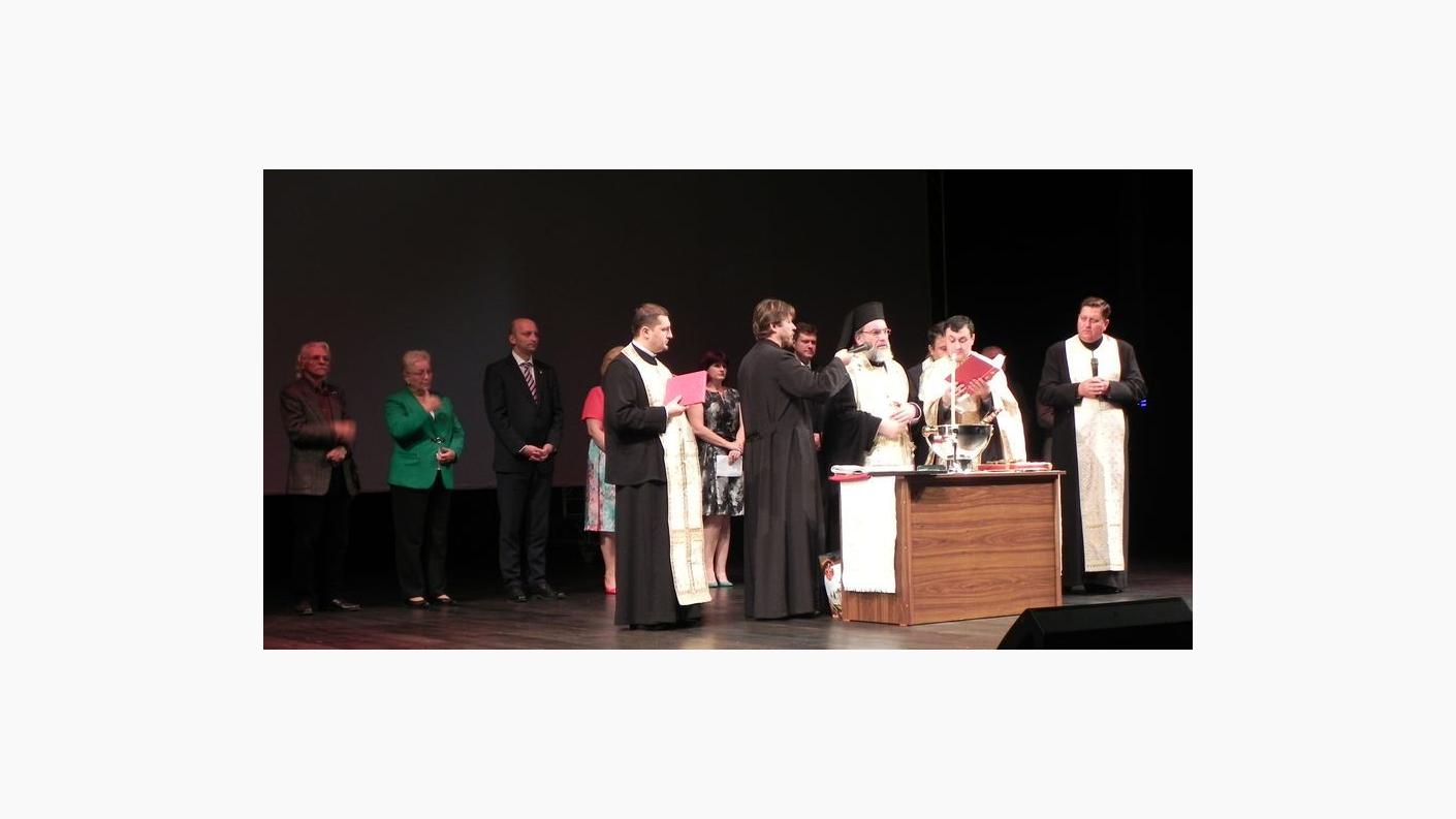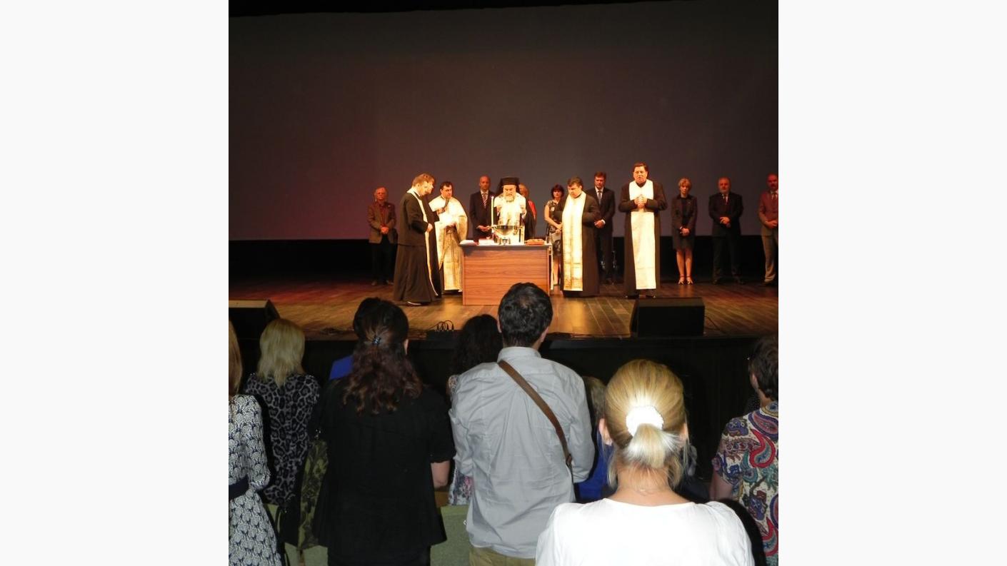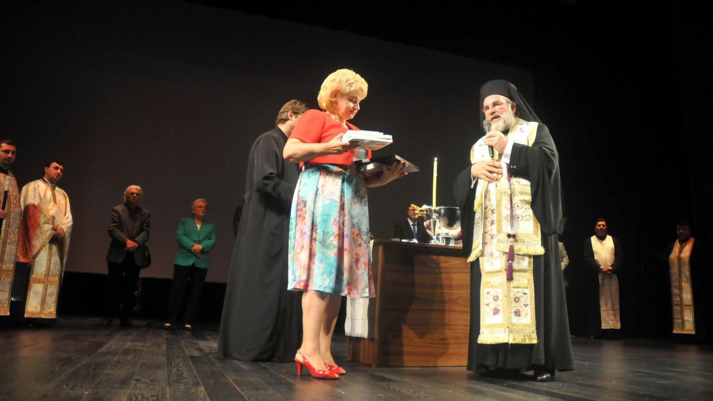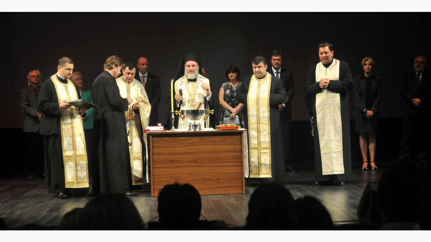 Artiști consacrați, profesori universitari, muzicieni, reprezentanți ai autorităților locale și centrale și intelectuali de renume ai învățământului băcăuan au fost alături de elevii și dascălii Colegiului Național de Artă ”George Apostu” la momentul de deschidere a noului an școlar 2014-2015. Alături de ei, pe scena Teatrului de Vară ”Radu Beligan” din municipiul Bacău, Biserica Ortodoxă a fost reprezentată de Preasfințitul Părinte Episcop Ioachim Băcăuanul, care a adus mesajul de binecuvântare și de încurajare a tinerilor care încep astăzi o nouă etapă din formarea lor intelectual-duhovnicească. ”Am o emoție aparte și o resimt la fiecare dintre voi, la copii și profesori. Emoția care ne cuprinde pe toți este vibrația Duhului Sfânt, Care se pogoară ca o undă, pătrunzând ușor în sufletele noastre, de la Preasfânta Treime. Unul dintre antevorbitori menționa faptul că trebuie să fim oameni între oameni. Un mare adevăr, pentru că a fi om înseamnă a privi în sus, a fi într-o perspectivă. Iar cel dotat cu conștiință de sine, cu libertate și voință liberă, trebuie să se spiritualizeze, să se reformeze pentru a fi asemenea cu prototipul, cu Mântuitorul Hristos. Ce frumos s-a precizat că trebuie să aveți modele diferite! Fiecare are ca model un dascăl, un artist, un sportiv. Personal, am venit aici pentru a vă spune să vă luați un model: Mântuitorul Iisus Hristos, Care se așază în mijlocul vostru și Care, dacă îl lăsați în sufletele voastre, vă va aprinde o lumină interioară, prin care veți vedea dacă este curat sau dacă este mizerie în inima voastră. Apoi, dacă veți întreține această lumină, cu revelațiile care se adaugă de-a lungul timpului, vă va ajuta la creșterea voastră culturală, duhovnicească și profesională. Iar Mântuitorul Iisus se va recunoaște în voi și în faptele voastre. Trebuie să fiți entuziaști, adică să fiți în Dumnezeu”, a mai adăugat Preasfințitul Ioachim Băcăuanul. Cu această ocazia, ierarhul a dăruit Colegiului Național ”George Apostu” icoana Sfintei Cuvioase Parascheva, așa cum apare reprezentantă în Catedrala Arhiepiscopală din Roman, îndemnându-i totodată pe elevi să viziteze acest spațiu sacru ce constituie o bijuterie arhitecturală și iconografică. De asemenea, a mai oferit Cartea Cărților, Sfânta Scriptură, și o serie de volume apărute în ultima perioadă la editura ”Filocalia” a Arhiepiscopiei Romanului și Bacăului.
