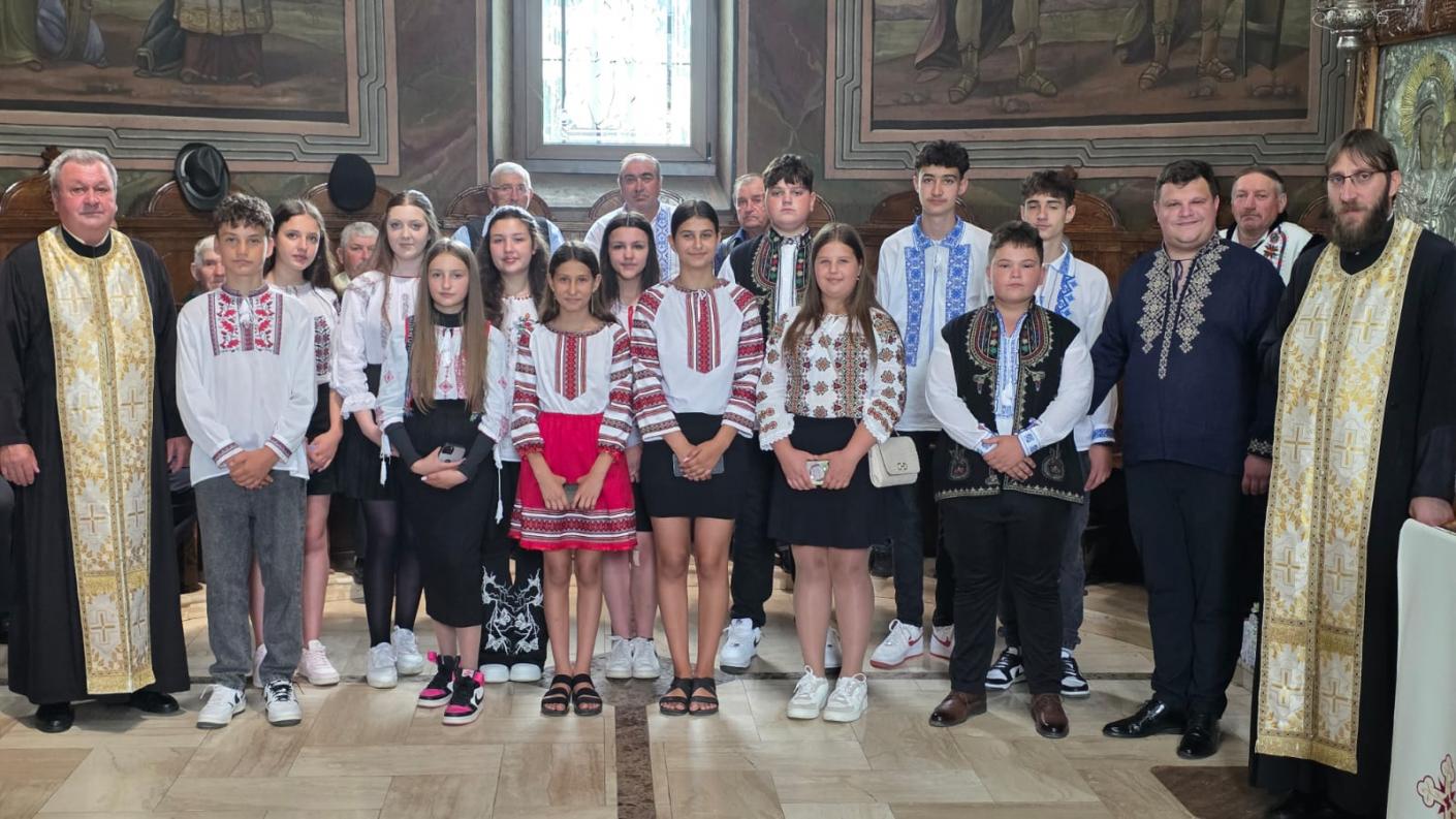 Copiii parohiei, îmbrăcați în ii și costume populare, au prezentat într-un scurt moment artistic cântece și poezii tradiționale.