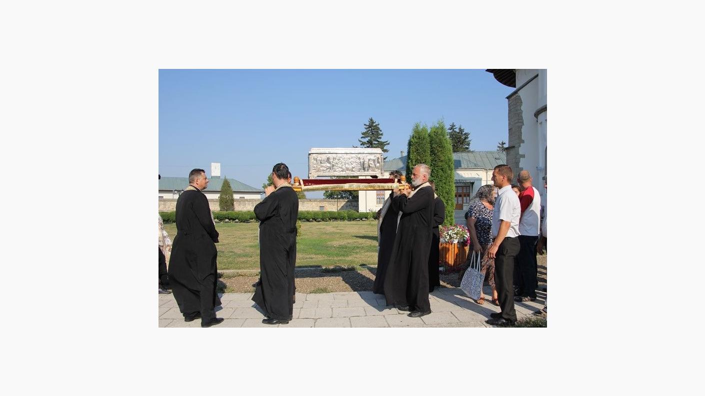 De aici, cu binecuvântarea IPS Arhiepiscop Ioachim, pelerinii au avut marea bucurie de a însoți, la întoarcere, racla cu moaștele a 22 de sfinți, între care și o părticică din moaștele Sfintei Cuvioase Parascheva, Ocrotitoarea Moldovei, care va fi așezată spre închinare toată săptămâna duhovnicească în Catedrala „Sf. Nicolae” din Buhuși.