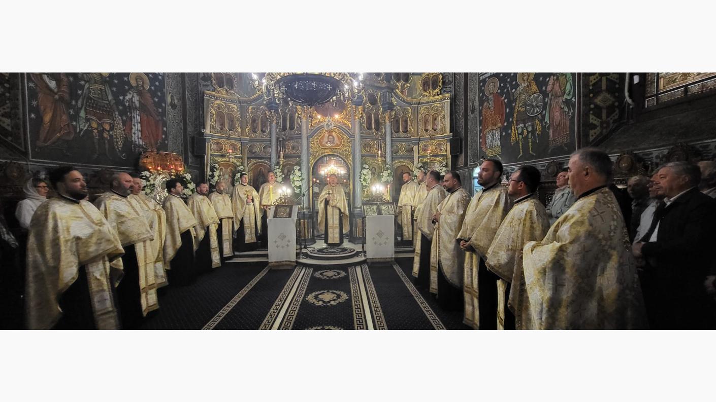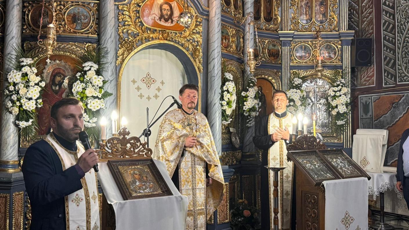 În cadrul Sfintei Liturghii de astăzi s-a făcut și pomenirea ctitorilor bisericii, iar răspunsurile la strană au fost date de către corul de maici al Mănăstirii Văratec.