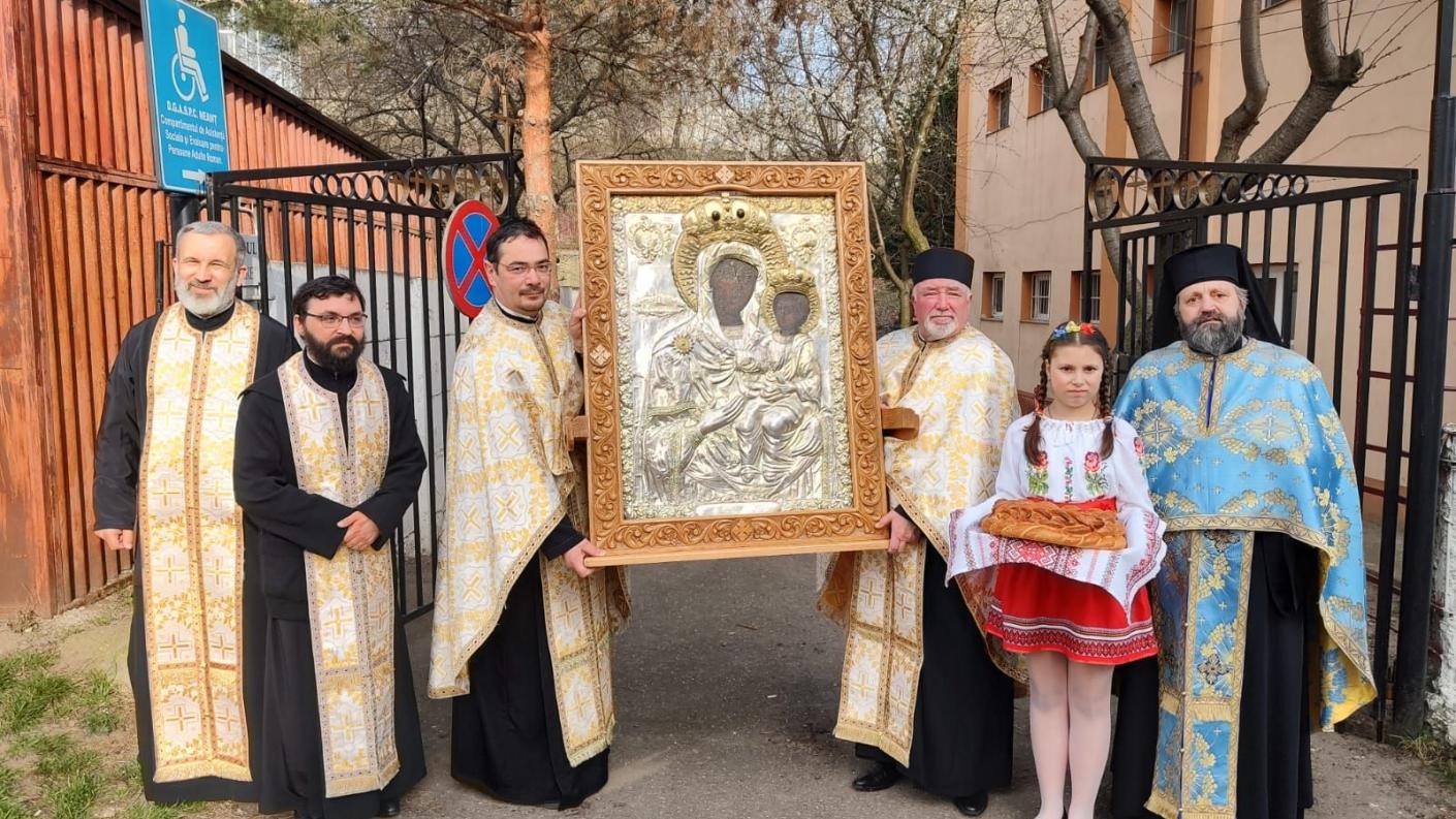 La ceas de Priveghere întru cinstirea marelui praznic al Bunei Vestiri, hramul Centrului de plasament social filantropic Romanița din Municipiul Roman, cu binecuvântarea Înaltpreasfințitului Părinte Ioachim, a fost primită în această instituție Icoana făcătoare de minuni a Maicii Domnului de la Parohia Trifesti.