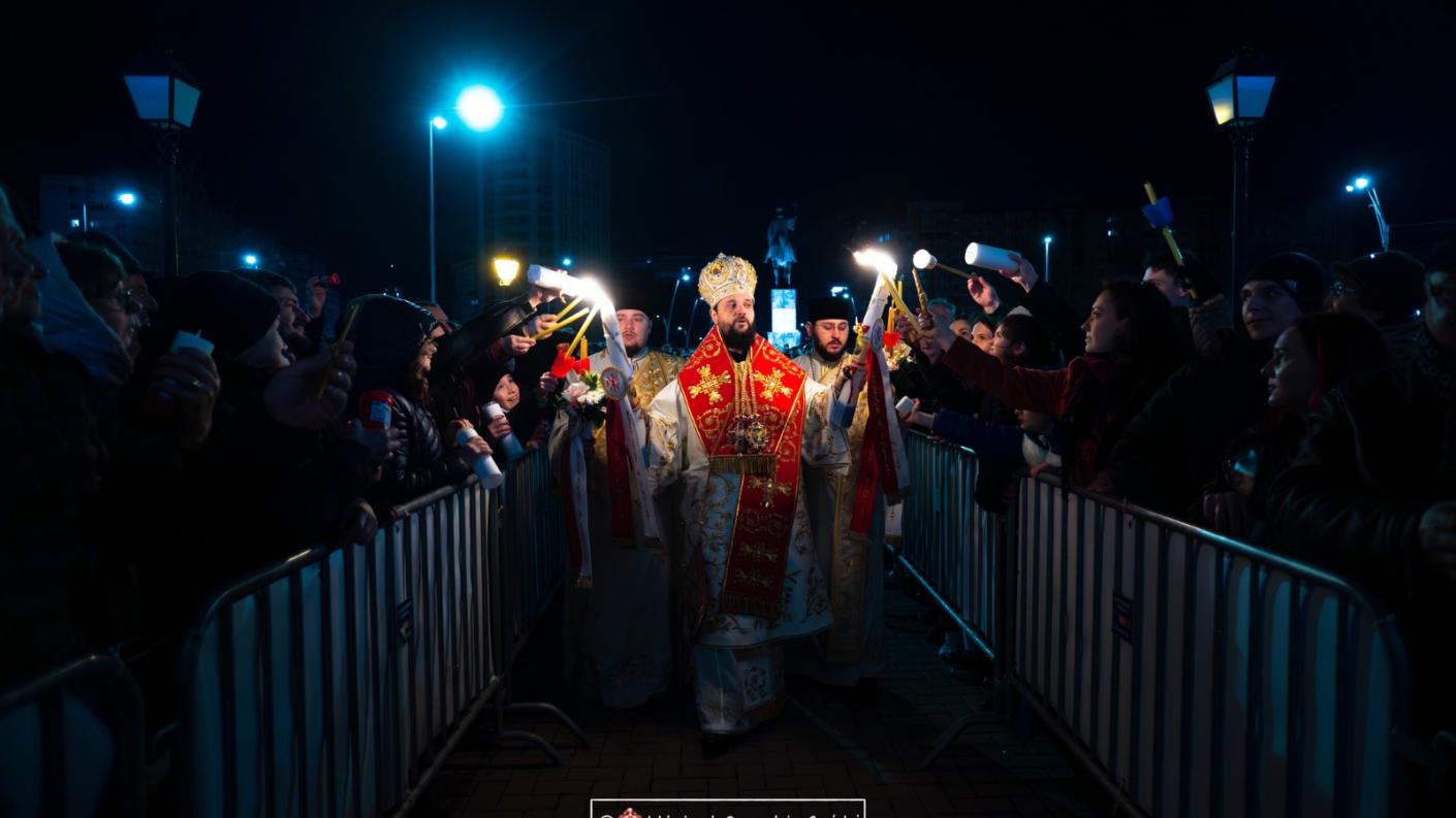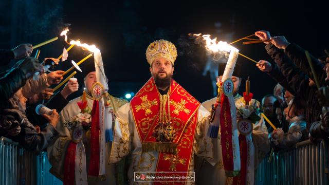 Într-o atmosferă de adâncă bucurie, centrul urbei băcăuane a devenit neîncăpător pentru mulțimea credincioșilor veniți să ia parte la praznicul – izvor al propriei învieri. Împreună cu ierarhul slujitor, preoții și diaconii prezenți, miile de credincioși, în sunete de clopote, cu lumânările în mâini, au înconjurat sfântul lăcaș, după cum este rânduiala liturgică în Noaptea Învierii.