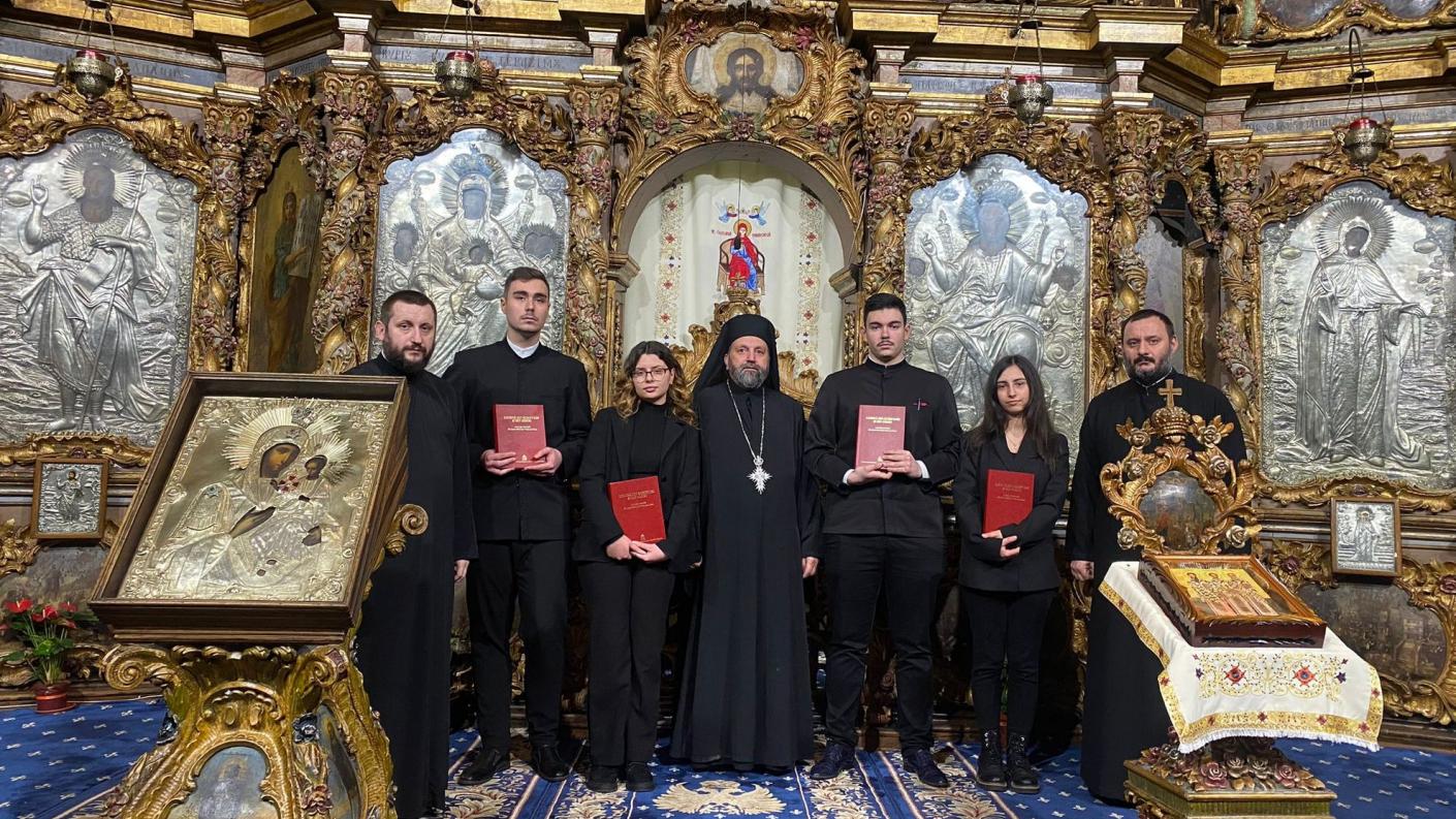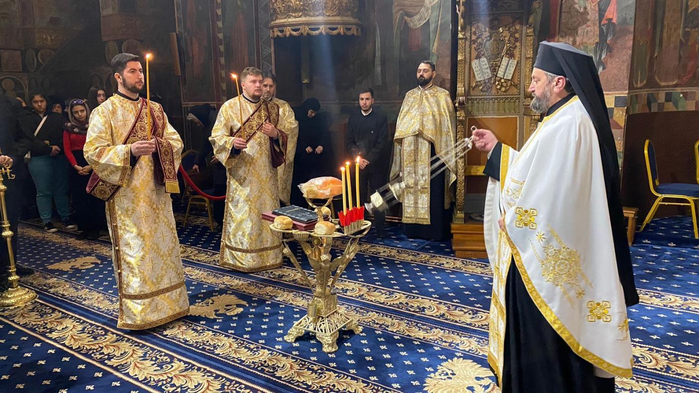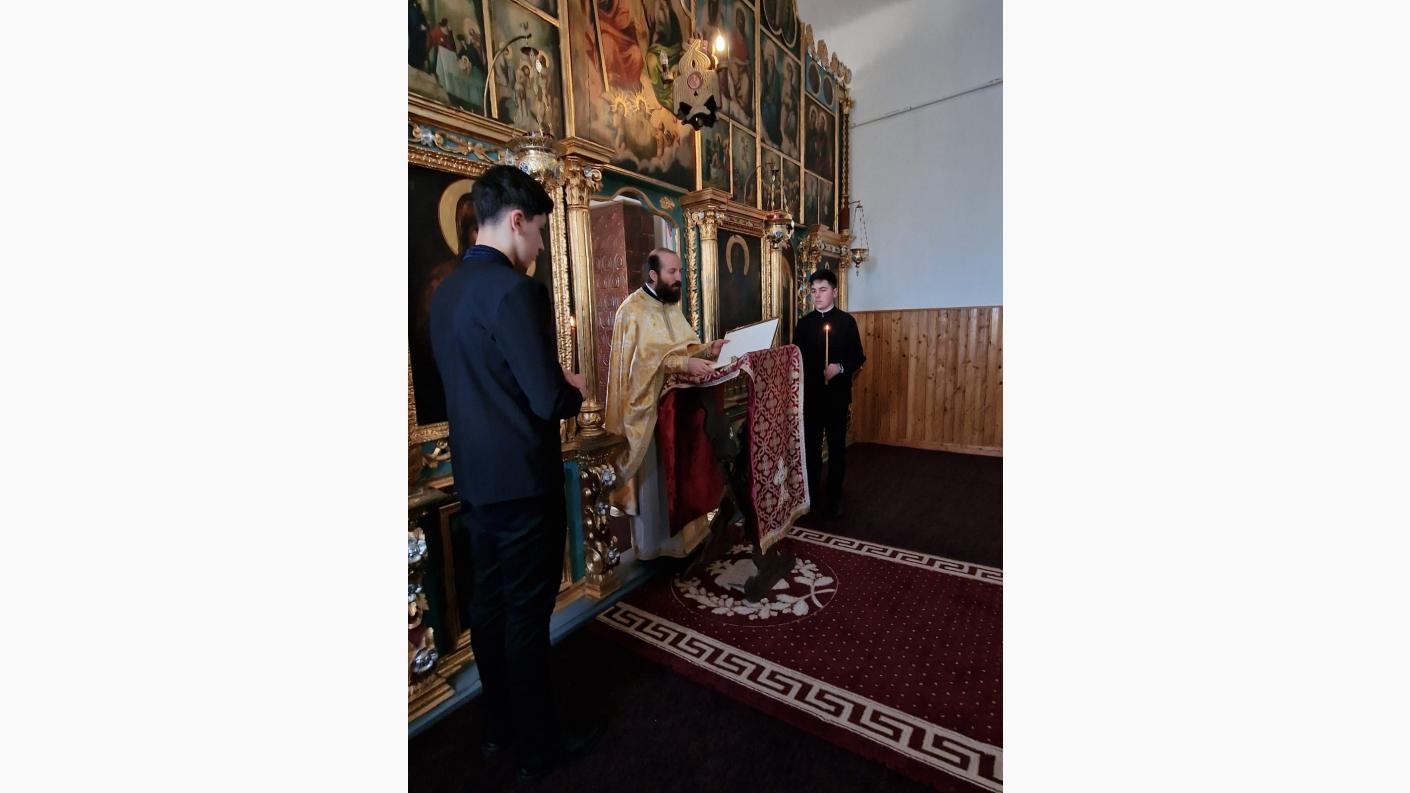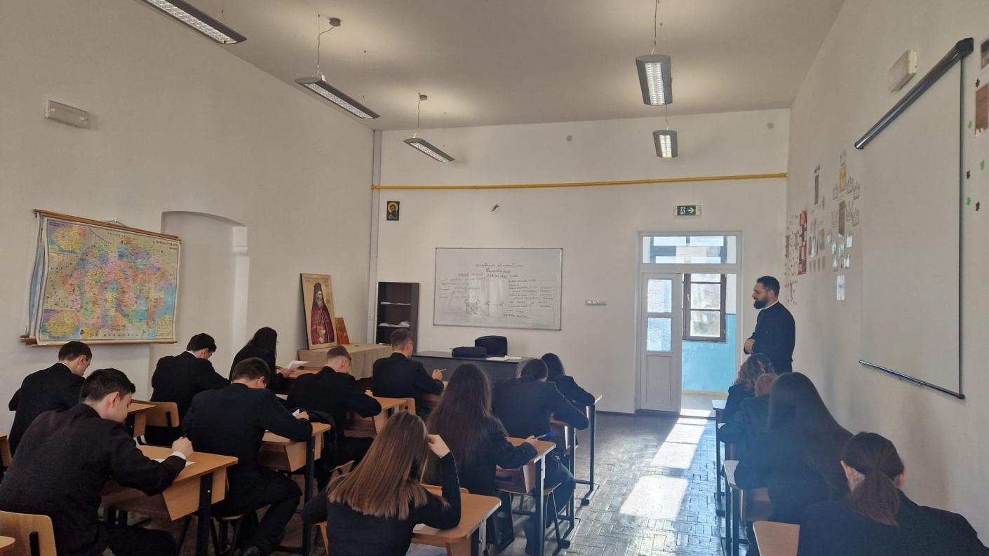 Prima bucurie pentru elevi a constituit-o întâlnirea cu chiriarhul eparhiei duminică, 28 ianuarie, la Biserica „Sfinții Trei Ierarhi” din Bacău. Elevii au dat răspunsurile la strană în cadrul Sf. Liturghii arhierești, precum și la slujba de sfințire a dispozitivelor medicale din cabinetul amenajat cu osteneala părinților slujitori ai sfântului locaș, pr. Aurel Cârlan, pr. Flavius Balaban și pr. Marian Gliga. Satisfacția participării la un astfel de eveniment a fost una specială, din moment ce părinții acestei biserici au o activitate misionară model, în ton cu predaniile celor trei sfinți ierarhi patroni deopotrivă ai sfântului locaș băcăuan și ai liceului teologic romașcan.