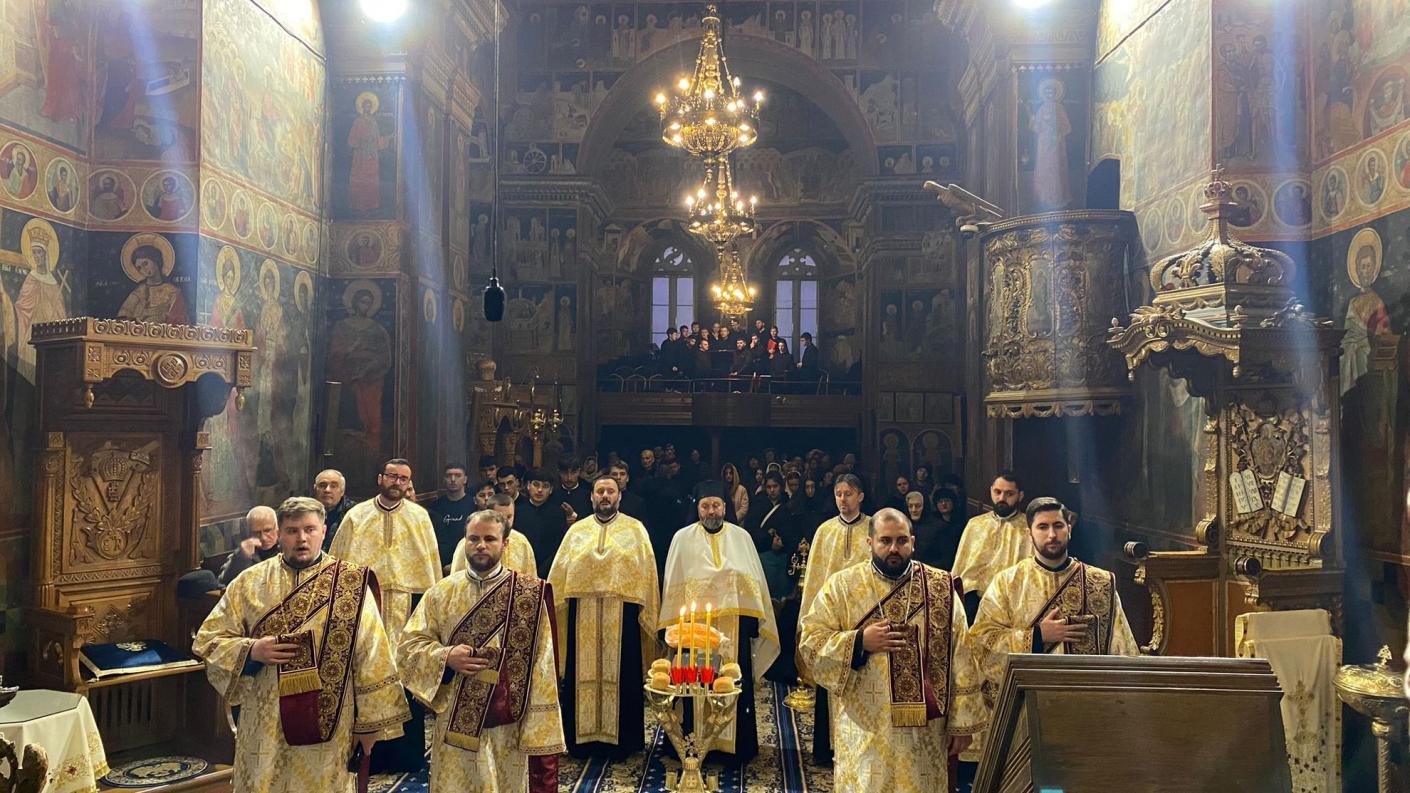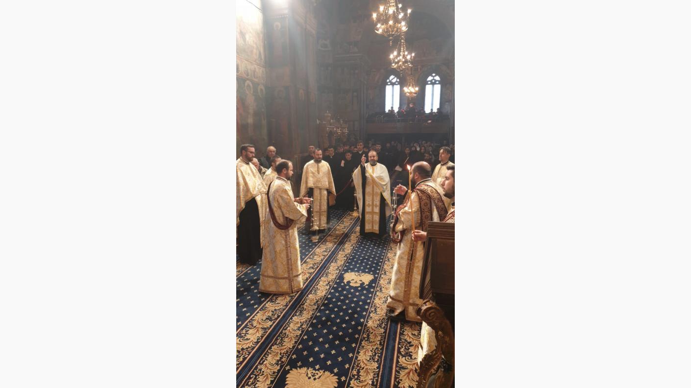 La Vecernia din ajunul sărbătorii, cu permisiunea părintelui ierodiacon Nectarie Iftimie, mare eclesiarh al Catedralei arhiepiscopale Sf. Cuv. Parascheva, au slujit în străvechiul locaș mușatin de cult părinții profesori din liceul teologic romașcan, sub protia părintelui profesor arhimandrit Andrei Ioniță. Elevii din corul Melozii Romanului, coordonat de părintele profesor Vlad Nicolae Samoilă au dat răspunsurile la strană în cadrul Vecerniei, la care a asistat un număr mare de colegi ai acestora. La sfârșitul slujbei a expus un inspirat cuvânt de învățătură despre această sărbătoare părintele profesor Vlăduț Ionuț Ghionoiu.