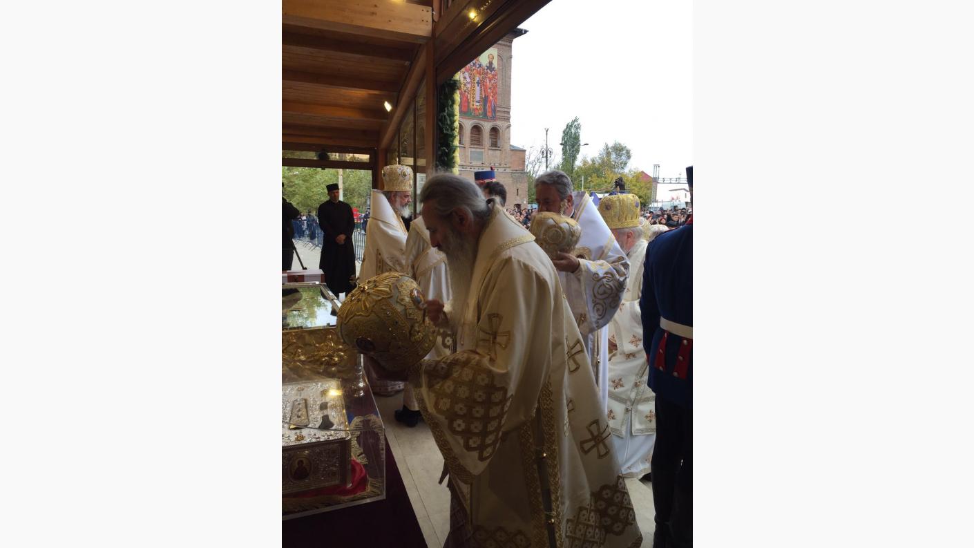 Anul acesta, alături de moaștele Sfântului Dimitrie cel Nou și a Sfinților împărați Constantin și Elena, se află și cele ale Sfinţilor Trei Ierarhi: Vasile cel Mare, Grigorie Teologul şi Ioan Gură de Aur, aduse la Bucureşti de la Mănăstirea „Sfântul Pavel” din Muntele Athosde o delegaţie a Bisericii Ortodoxe a Greciei condusă de Înaltpreasfinţitul Părinte Mitropolit Pavlos (Pavel) de Drama, informează Agenția de Știri Basilica, a Patriarhiei Române. Sfintele Moaşte au fost depuse spre închinare în noul baldachin de pe Colina Patriarhiei pentru a fi cinstite de către cler şi credincioşi până în ziua de miercuri, 28 octombrie 2015.