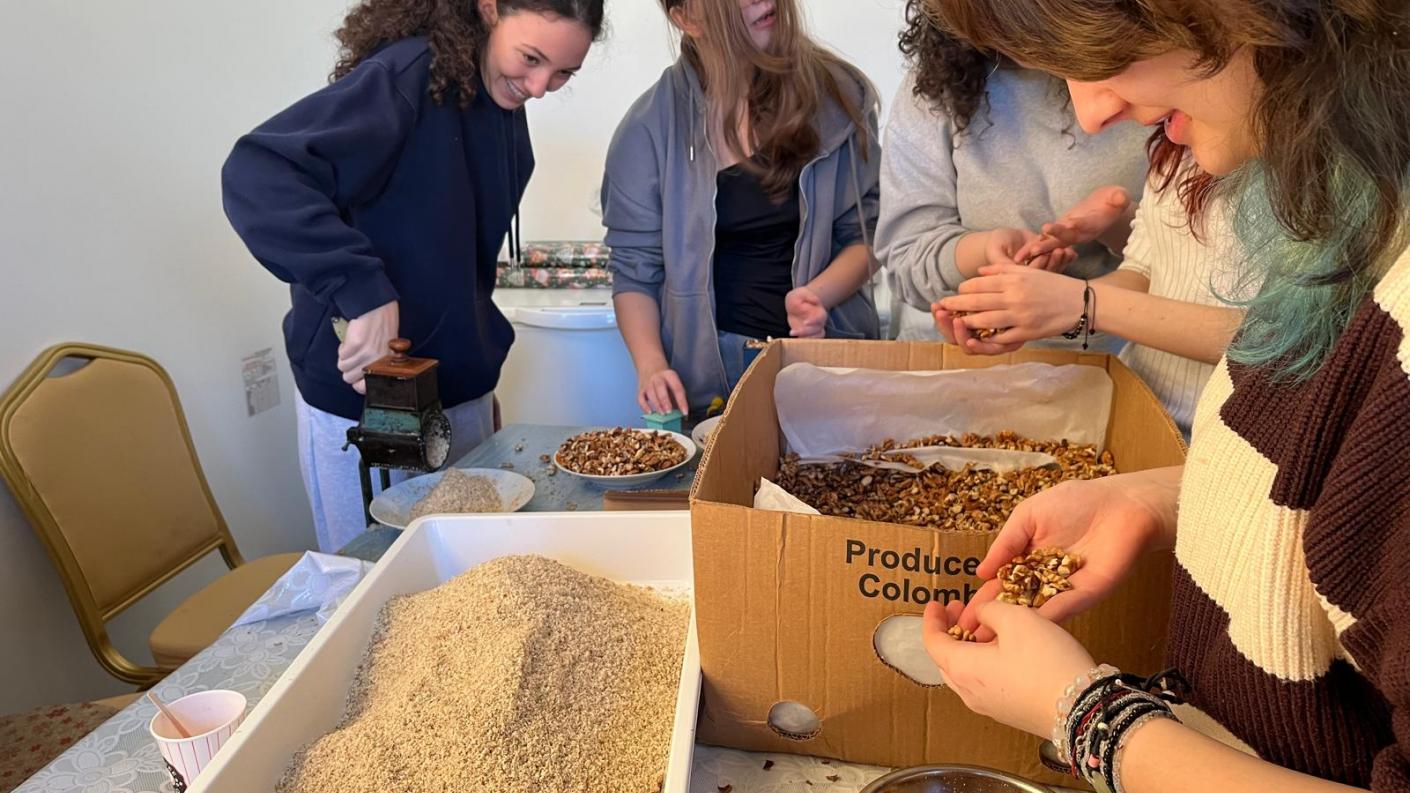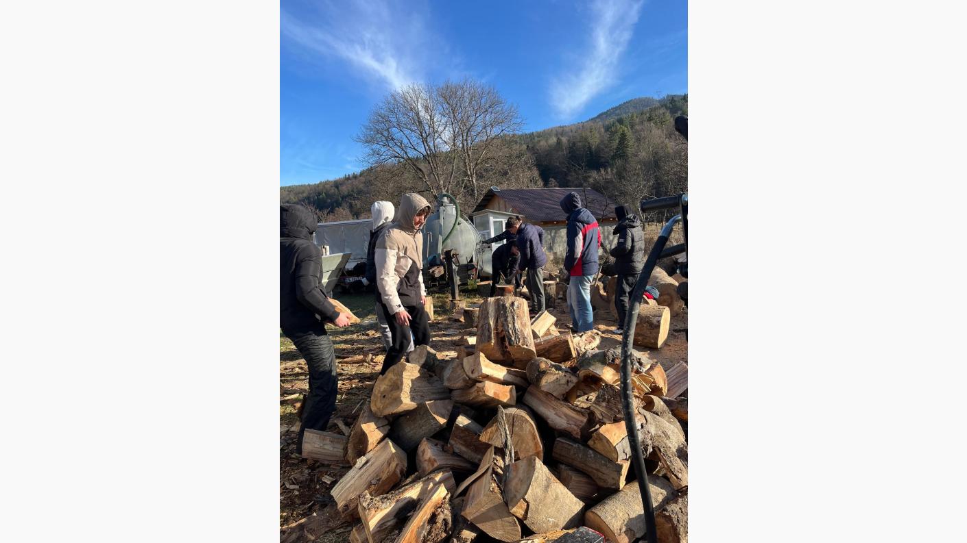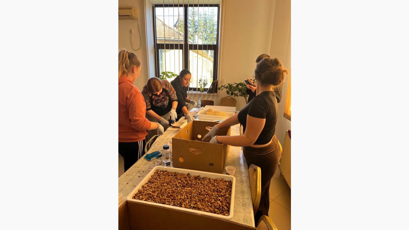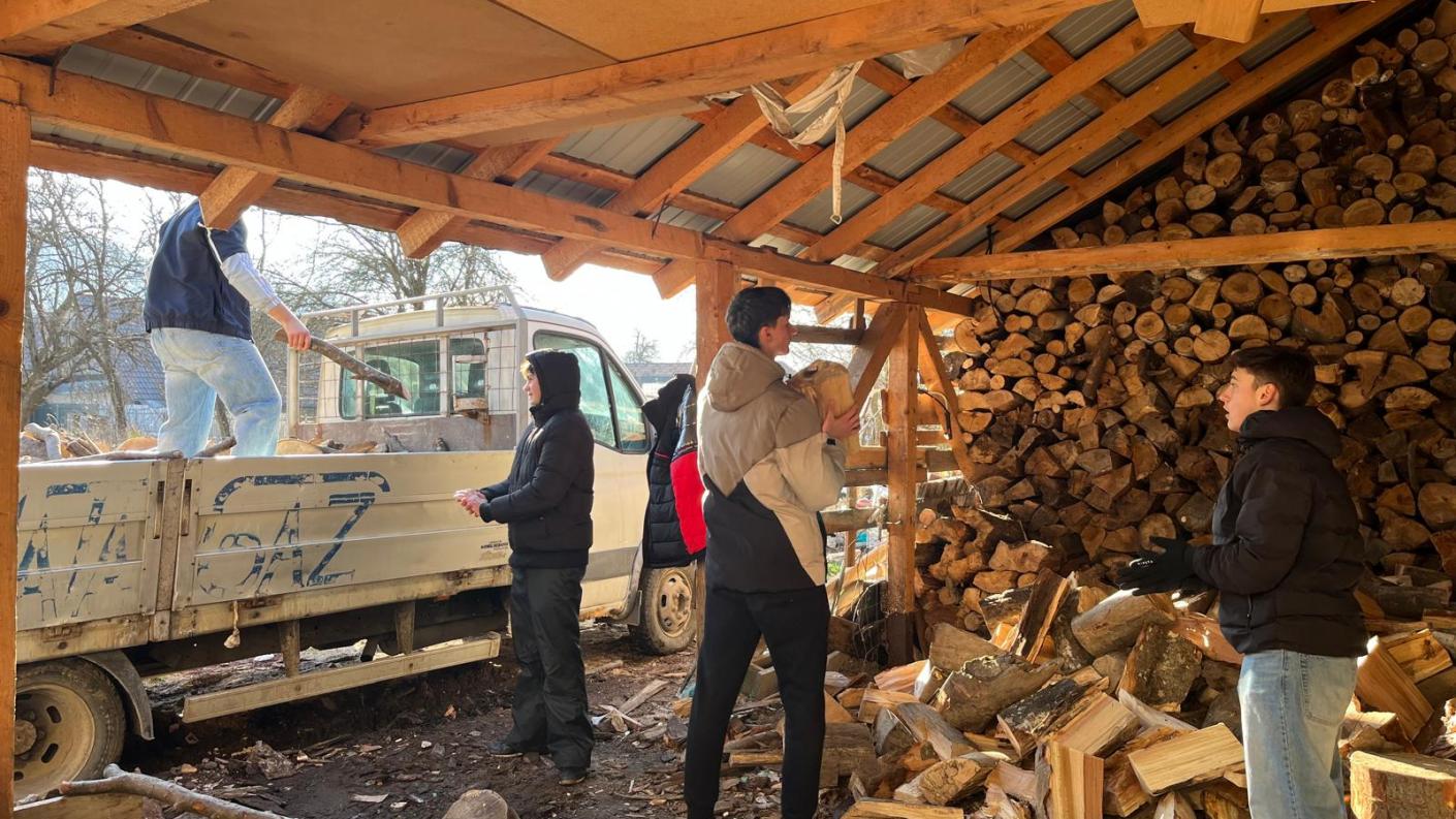 La rândul lor, voluntarii Colegiului Național „Dimitrie Cantemir” Onești, sub coordonarea domnului profesor Bogdan Romandaş, au adus cântec, energie și sprijin concret, ajutând la transportul lemnelor, curățarea legumelor și procesarea miezului de nucă, dovedind că solidaritatea se vede în fapte.
