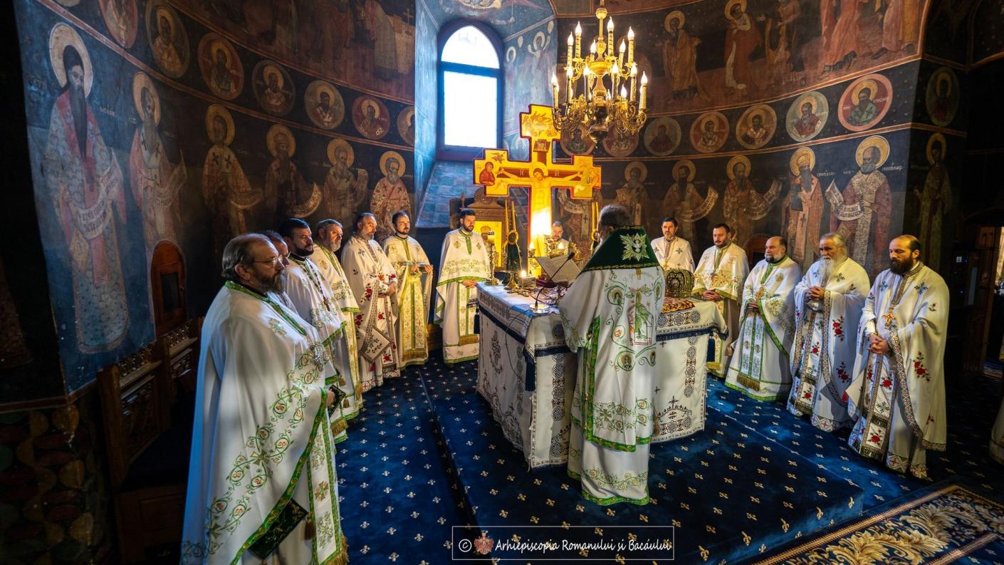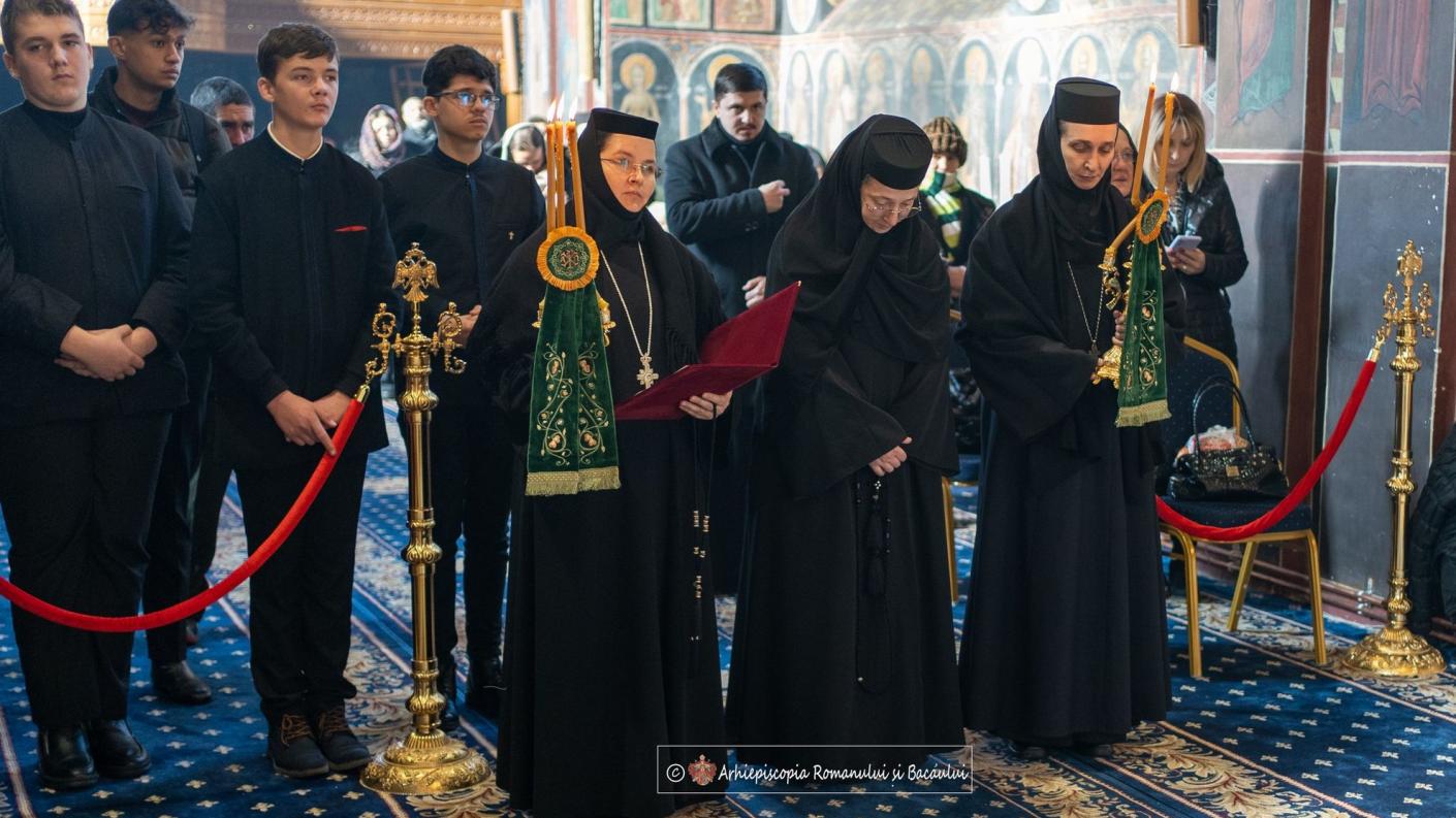 Miercuri, 10 ianuarie, de la primele ore ale dimineții, soborul preacuvioșilor ieromonahi, stareți ai mănăstirilor din Eparhia Romanului și Bacăului, sub protia Înaltpreasfințitului Părinte Ioachim, a săvârșit slujba ceasurilor, a acatistului sfântului, apoi Sfânta și Dumnezeiasca Liturghie, în prezența preacuvioaselor monahii, starețe ale mănăstirilor din Eparhia Romanului și Bacăului, a credicioșilor romașcani și a elevilor de la Liceul Teologic „Episcop Melchisedec” Roman, veniți în sfântul chivot mușatin pentru a se închina la racla ce conține un fragment din sfintele moaște ale sfântului bacăuan, adus de la Schitul Prodromu de Înaltpreasfințitul Părinte Ioachim.