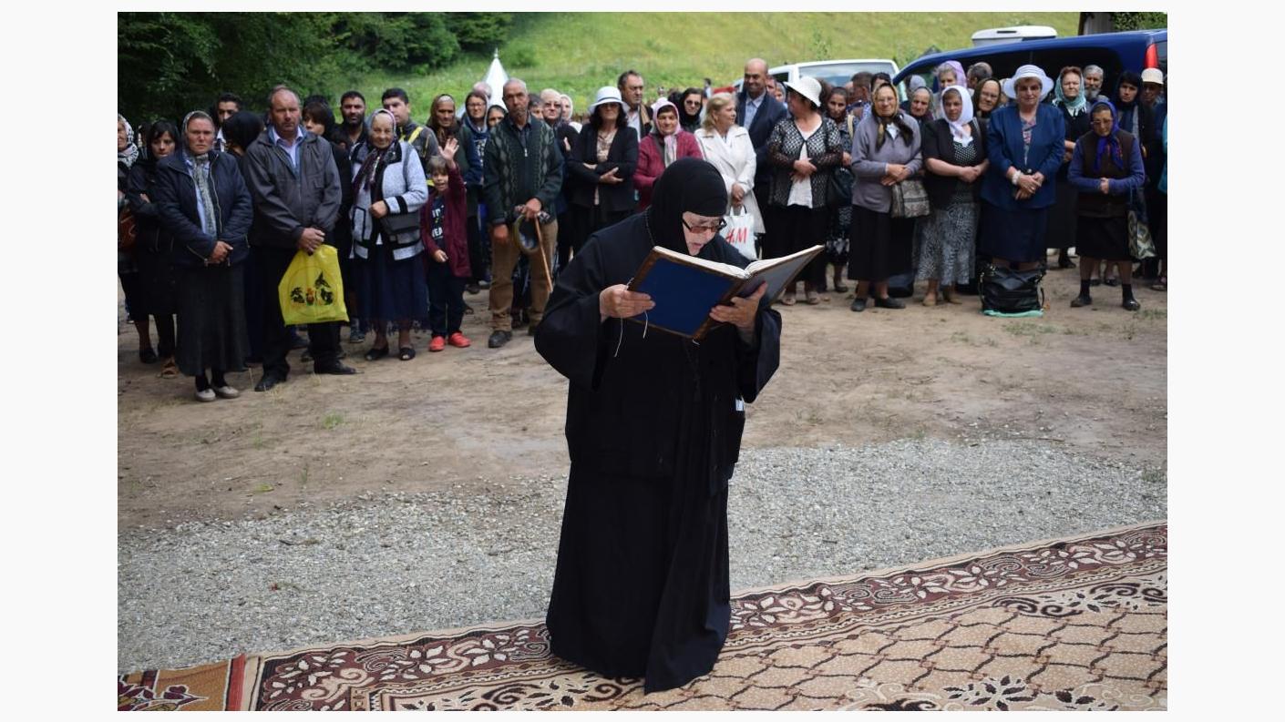 Credincioşii prezenţi la hramul schitului situat în „Poiana Maicii Domnului”, aşa cum a fost denumit acest loc mirific de către Înaltpreasfințitul Părinte Ioachim, Arhiepiscopul Romanului și Bacăului, au avut bucuria de a participa la Sfânta şi Dumnezeiasca Liturghie săvârşită de un sobor alcătuit din nouăsprezece preoţi, aflaţi sub protia părintelui Mina, duhovnicul şi slujitorul acestui aşezământ monahal.