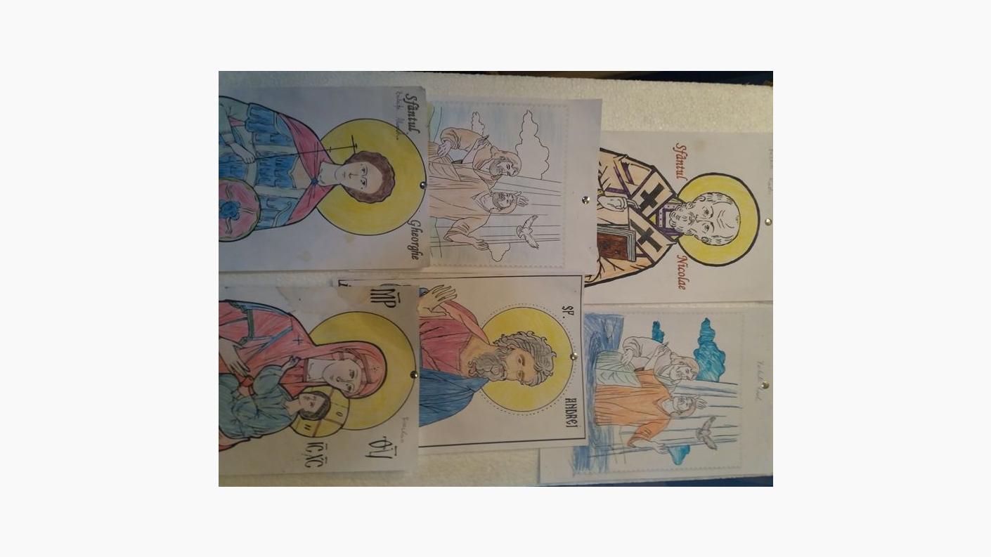 În cadrul celui de-al doilea atelier, cel plastic, copiii au pictat, colorat şi desenat chipuri de sfinţi sau scene biblice.