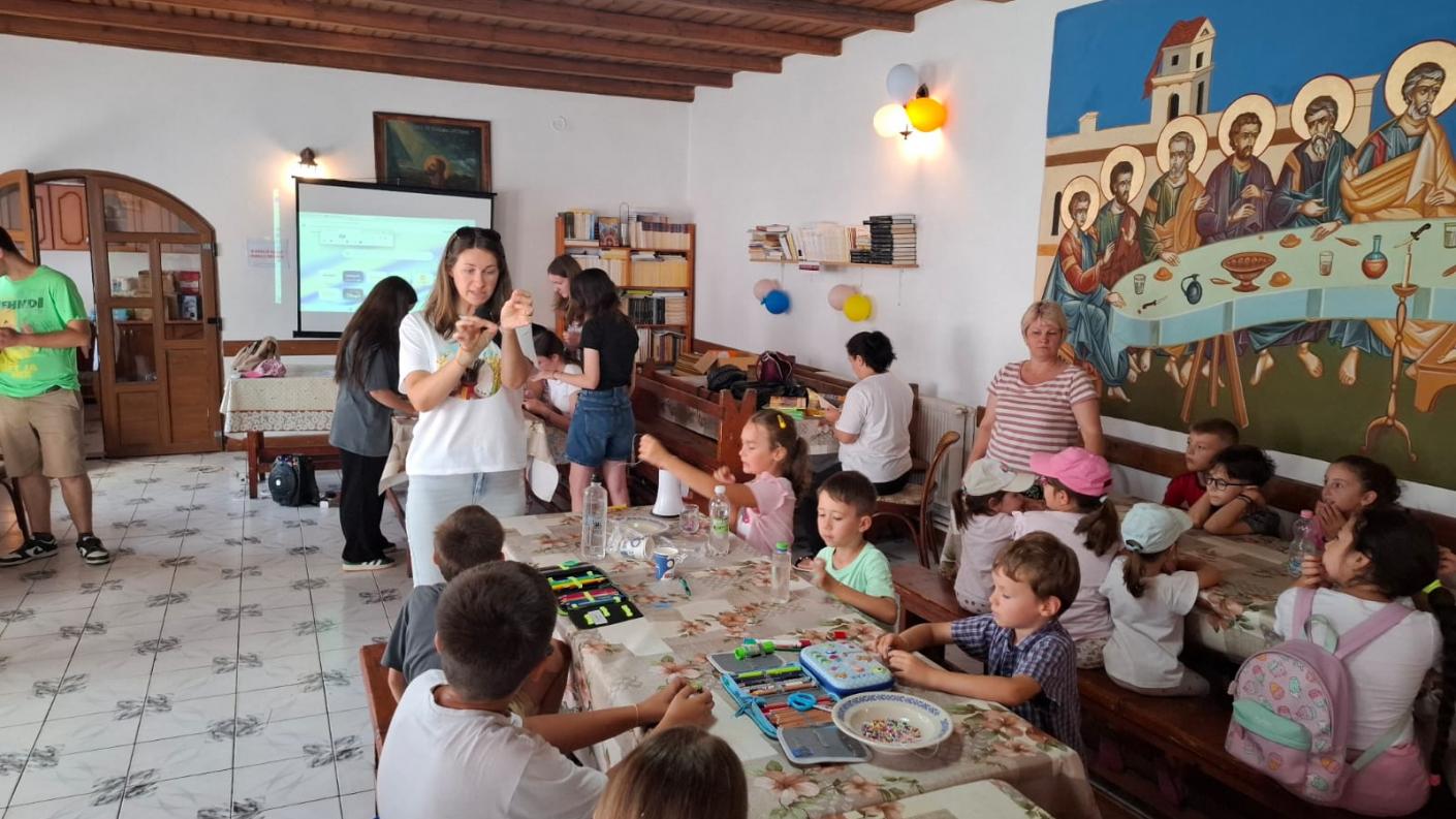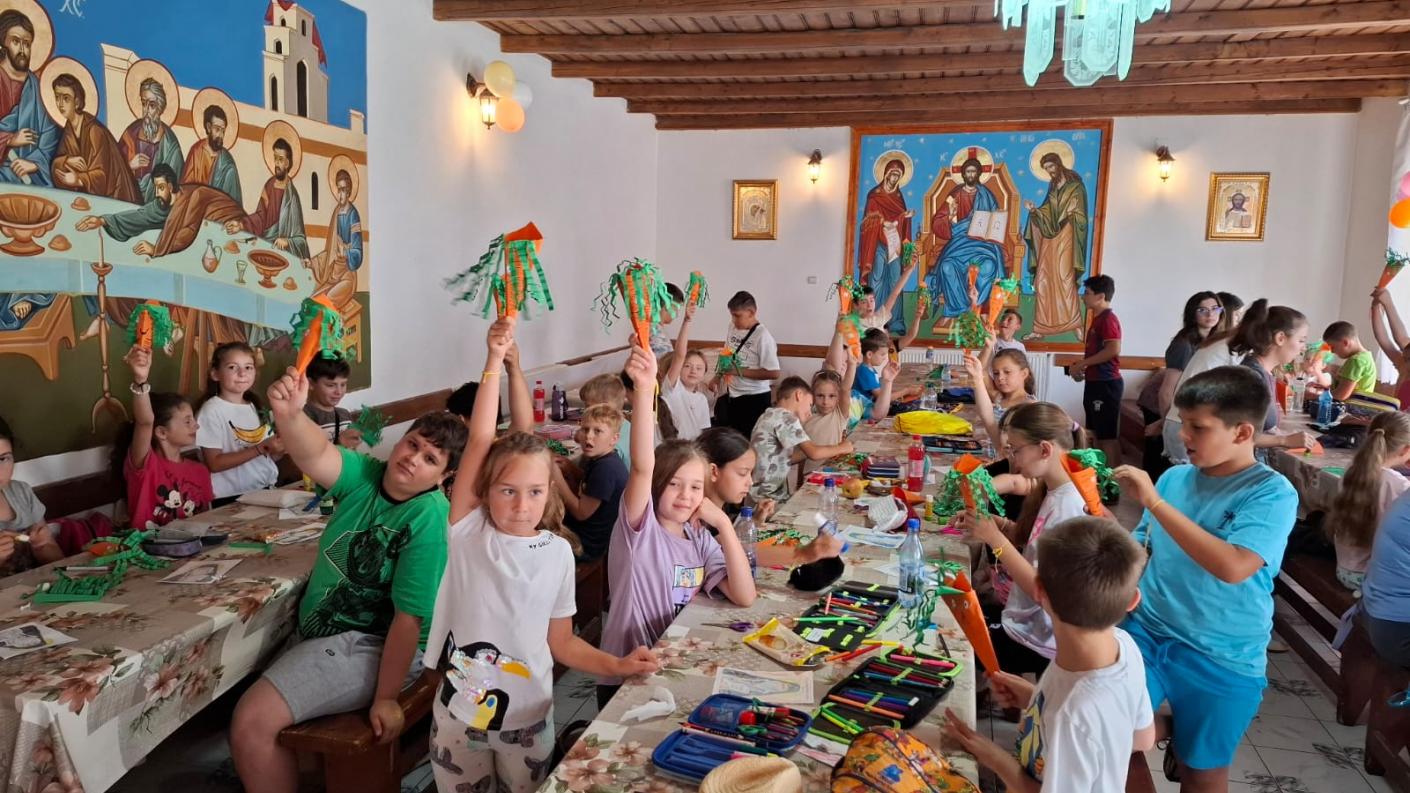 Acest program dedicat copiilor cu vârste cuprinse între 4 și 16 ani, care a reunit zilnic aproximativ 70 de participanți, 12 voluntari și 4 coordonatori, a început și s-a încheiat zilnic cu rugăciunea rostită împreună. Între aceste două repere esențiale, copiii s-au bucurat de jocuri, muzică și mișcare, ateliere de creație, prezentarea vieții unor sfinți și, nu în ultimul rând, de surprize dulci și apetisante.
