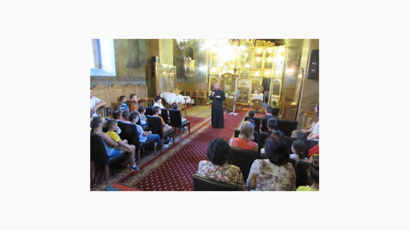 Duminică, 14 august, activitatea Școlii de vară  a continuat cu participarea la Slujba Prohodului Adormirii Maicii Domnului oficiată în biserica satului de către părintele Gheorghe Ursache.