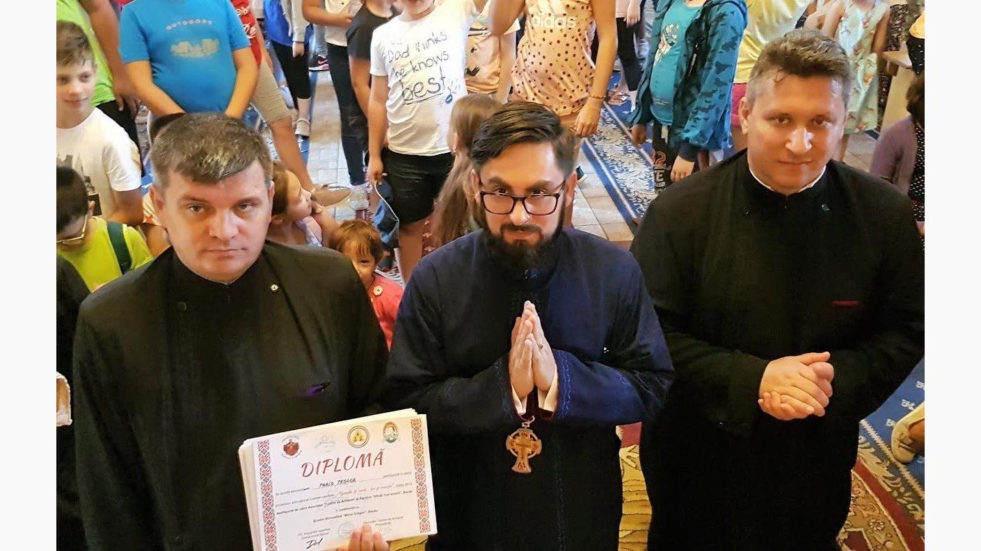Prezent în penultima zi a proiectului a fost şi părintele Daniel-Ionel Marari, Inspector eparhial în cadrul Biroului de catehizare și activități cu tineretul, delegat al Înaltpreasfințitului Părinte Arhiepiscop Ioachim. Părintele inspector a transmis binecuvântările venite din partea IPS Părinte Ioachim şi a împărţit diplome de participare copiilor şi voluntarilor.