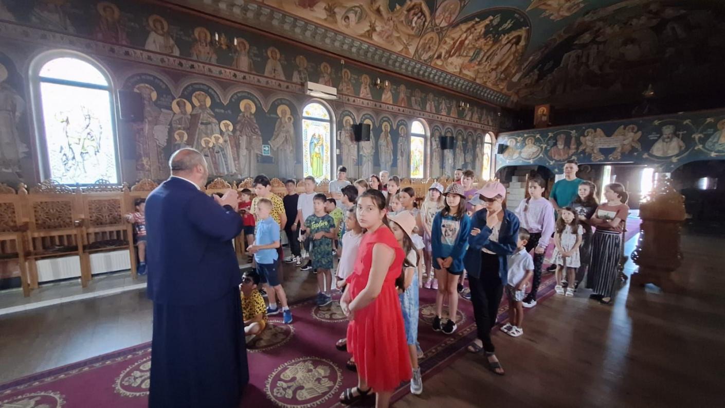 Duminică, copiii au participat la Sfânta și Dumnezeiasca Liturghie primind Sfânta Împărtășanie, iar după momentul liturgic s-au delectat cu pizza și răcoritoare. Părintele Ionuț-Liviu Apetrei a mulţumit Înaltpreasfinţitului Părintelui Arhiepiscop Ioachim pentru binecuvântare, reprezentanţilor Şcolii Populare de Artă, părintelui protoiereu Eugen-Ciprian Ciuche pentru coordonare, precum şi tuturor participanţilor pentru implicare, încredere și susținerea realizării acestui proiect. „Această perioadă încărcată de bucurie și emoție, petrecută împreună, a arătat tuturor că zâmbetul și inocența copilăriei sunt cele mai frumoase daruri ale lui Dumnezeu”, a mai menţionat părintele Ionuț-Liviu Apetrei.