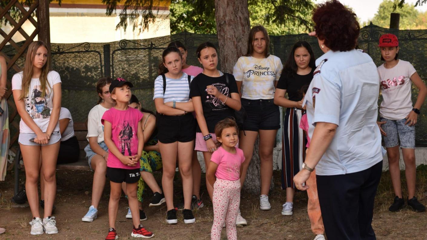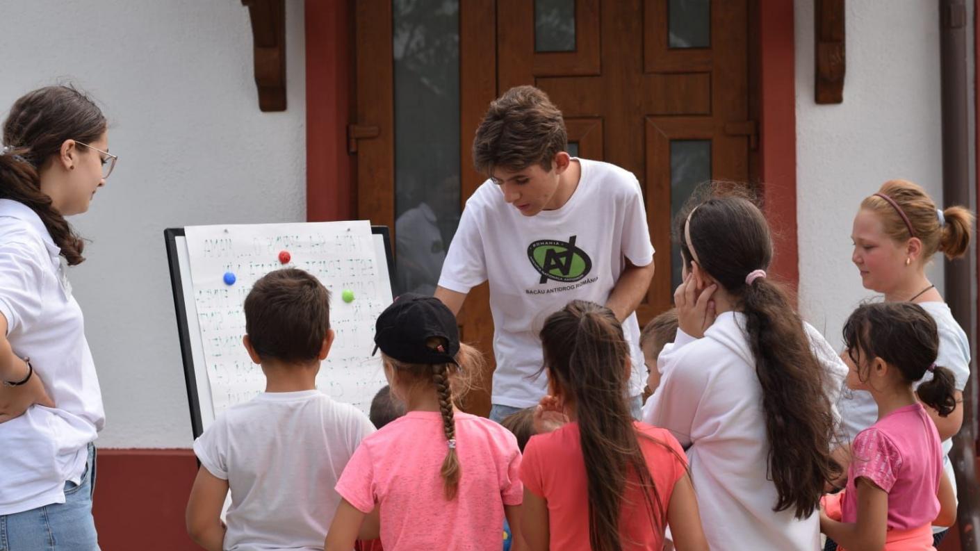 Joi, în a patra zi de școală estivală, copiii au primit vizita mai multor instituții de la care au avut numai de învățat. Alături de elevi au fost membri ai Agenției Naționale Antidrog, filiala Bacău, reprezentată prin doamna Marta Butnaru, membri ai Brigăzii Mobile de Jandarmi Bacău și polițiști de la Brigada Mobilă a Poliției Rutiere Bacău. Rând pe rând, domnii prezenți în curtea lăcașului de cult au explicat tinerilor prin jocuri, filme de prezentare, planșe ori discuții, răul pe care îl produc substanțele stupefiante organismului uman, echipamentul de protecție a unui jandarm sau principalele reguli pe care trebuie să le cunoască un pieton în trafic. Această zi a însemnat în mod deosebit pentru cei mici o zi de cunoaștere și a acumulării de noi informații care îi va ajuta în viitorul și devenirea lor.