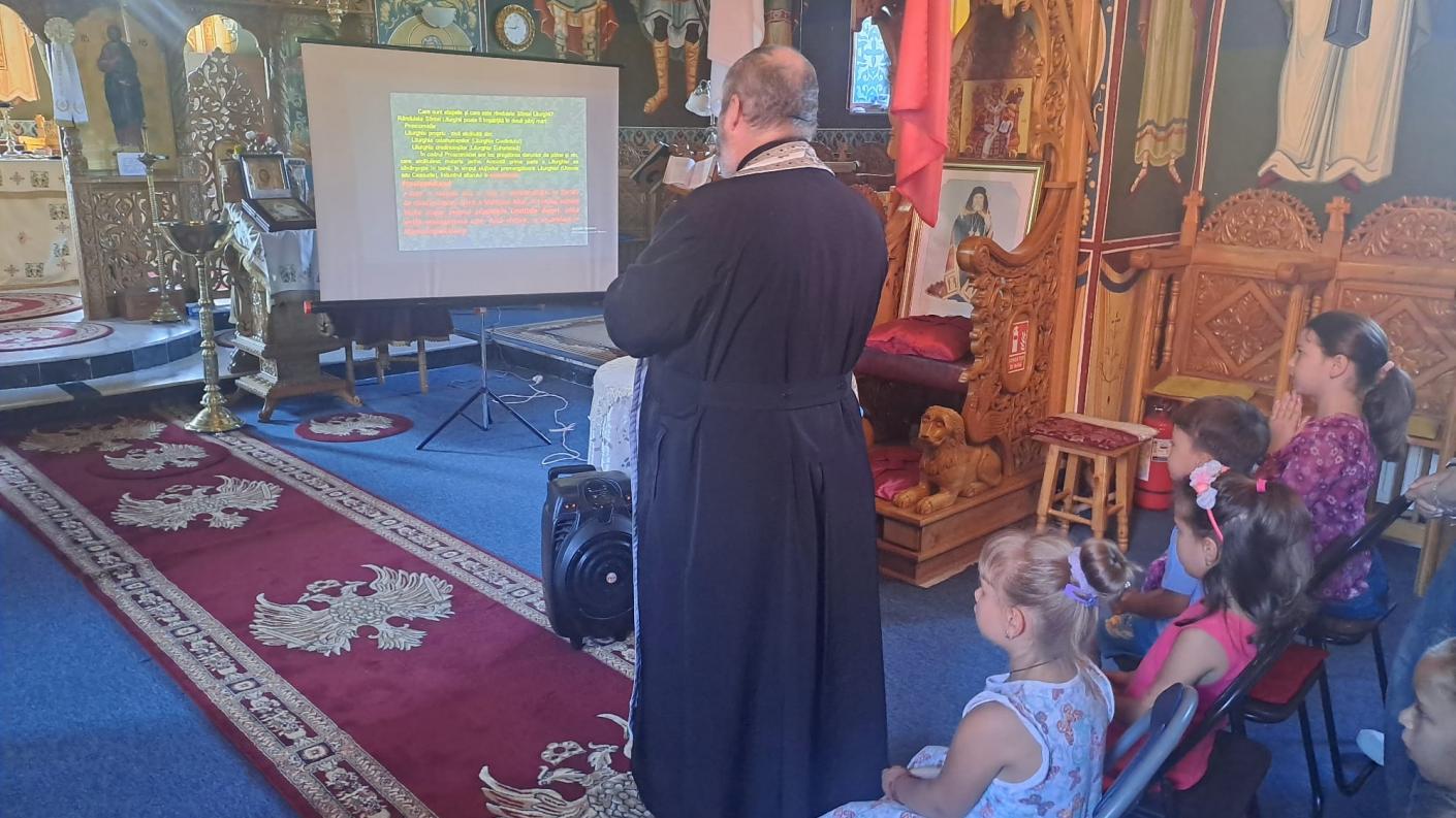 Această activitate a fost structurată pe durata a patru zile, 4-7 august 2025, în intervalul orar 9.00-12.00, participând un număr de 25 copii. Întâlnirile s-au dorit a fi momente de îmbinare a rugăciunii cu cateheza, a jocului cu bucuria și a cunoașterii cu buna dispoziție. În fiecare zi, activitățile au debutat cu o rugăciune și au continuat cu cateheze prezentate de părintele Constantin și de domnul profesor de religie. Acestea au cuprins informații despre Sfânta Liturghie - momente și semnificații, Taina Sfintei Euharistii și prescurile - rolul și importanța lor în cultul ortodox. De asemenea au avut loc diverse activități sportiv - recreative, activități cultural - artistice și ateliere de muzică sub coordonarea d-nei prof. Cotfas Adina. Copiii participanți au fost spovediți și împărtășiți în cadrul Sfintei Liturghii săvârșite cu ocazia Praznicului Schimbării la Față a Domnului.
