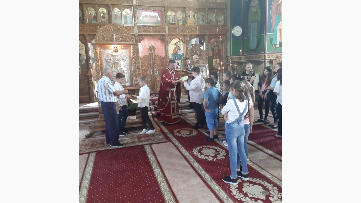 Duminică, în timpul săvârșirii Sfintei Liturghii, copiii au primit Sfânta Împărtășanie ca bucurie a încheierii unui nou proiect educațional, medalii și diplome personalizate pentru acest eveniment.