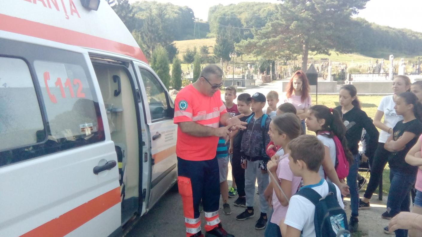 În colaborare cu Serviciul Județean de Ambulanță Bacău, la biserica parohială s-a deplasat un echipaj cu o autospecială echipată cu aparatură pentru salvarea în regim de urgență a vieții oamenilor, copiilor fiindu-le prezentate dotările autospecialei, precum și măsurile de prim ajutor și resuscitare.