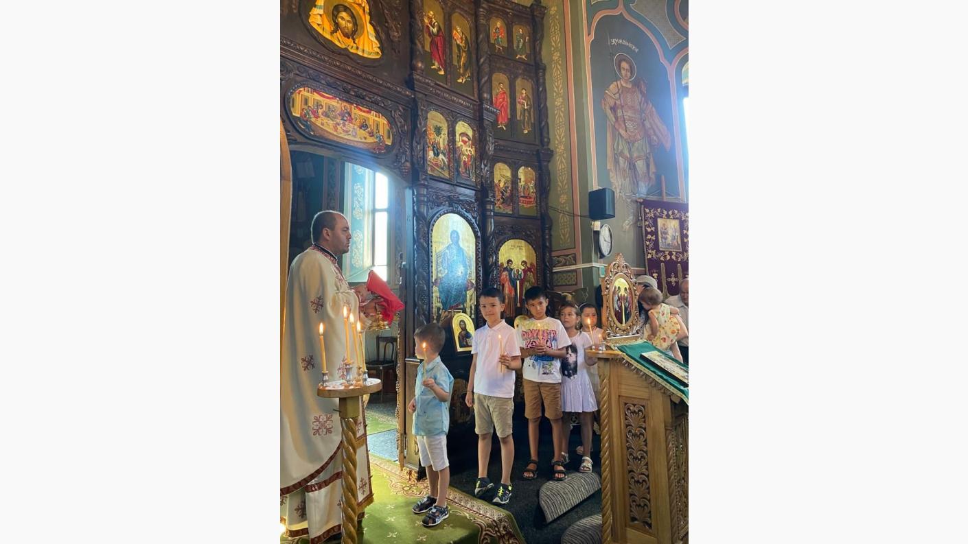 Duminică, în cadrul Sfintei Liturghii, încărcați de sinceritatea lor specifică, copiii s-au făcut părtași Sângelui și Trupului Domnului, mulțumind lui Dumnezeu și tuturor sfinților pentru clipele frumoase petrecute în tinda bisericii.
