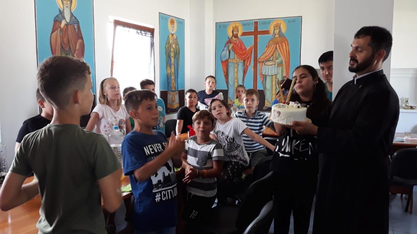 Cum vineri era ultima zi din cadrul Şcolii de vară a fost şi o zi specială. Spre sfârşitul programului li s-a făcut o surpriză delicioasă, un tort, urându-li-se “La mulți ani”, lor şi părinţilor.