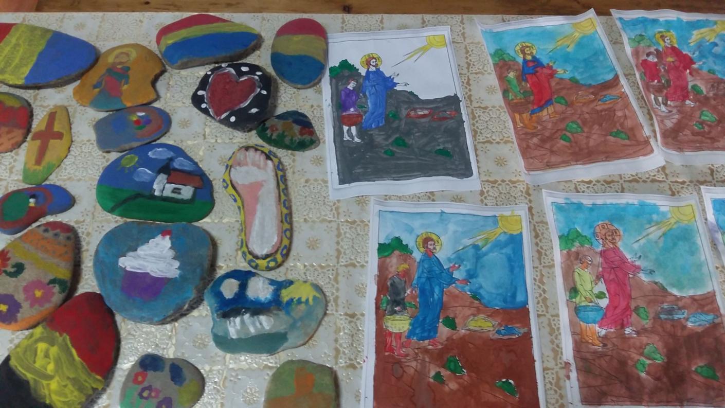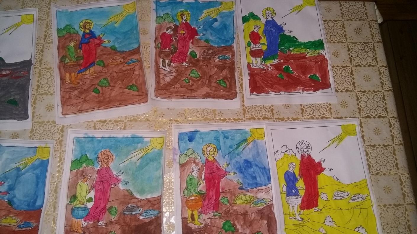 În acest sens a fost pictată de către tineri scena „Înmulțirii celor 5 pâini și 2 pești în pustie” de către Mântuitorul nostru Iisus Hristos.