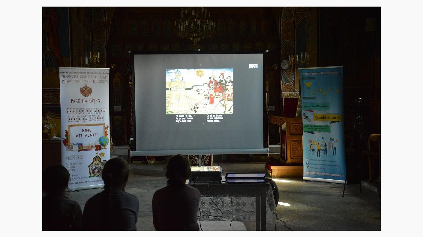 În partea de final a zilei, copiii au vizionat pe ecranul de proiecție „Legenda Mănăstirii Argeșului”, după care a urmat un dialog între organizatori și participanți, prezentându-se concluziile zilei.