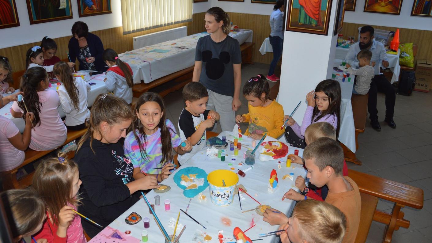 Prima zi a continuat cu activități educative și creative în casa praznicală coordonate de prs. Anca Balaban, unde copilașii au realizat împletituri, au desenat, ca mai apoi să participe la diferite jocuri sportive pe piațeta din imediata apropiere a bisericii.