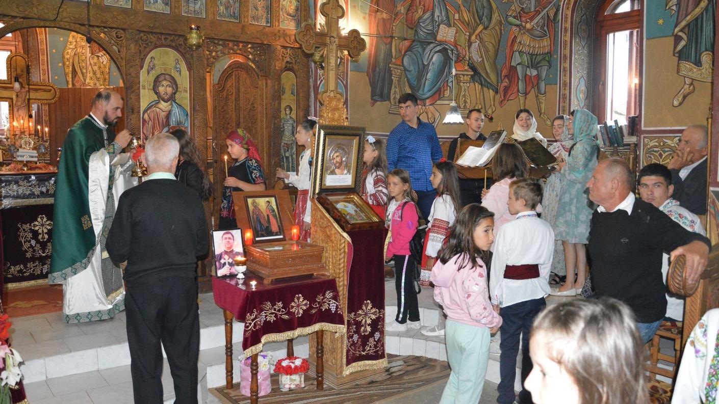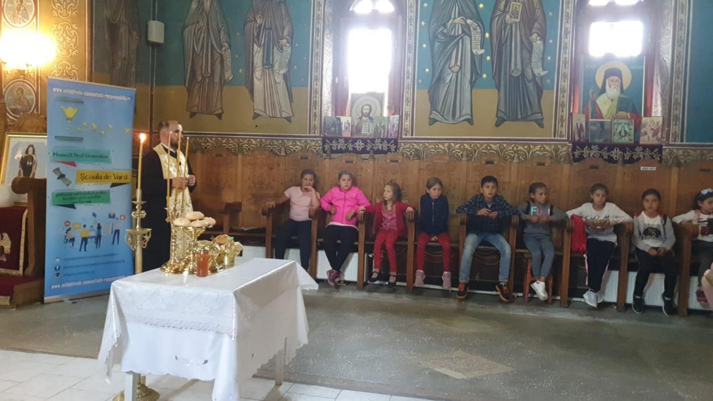 Duminică, 29 august, copiii au participat la Sfânta Liturghie, moment la care cei mai mici dintre participanții școlii de vară s-au împărtășit cu Trupul și Sângele Domnului. Răspunsurile la strană au fost oferite de către surorile Maria, Iustina și Ioana Nica, care au venit pe meleagurile natale în luna august, și care în restul anului sunt stabilite în Italia. Ele transmit mai departe tradițiile românești prin activitățile pe care le desfășoară cu Grupul Coral Feminin Arpeggio, Roma, Italia.