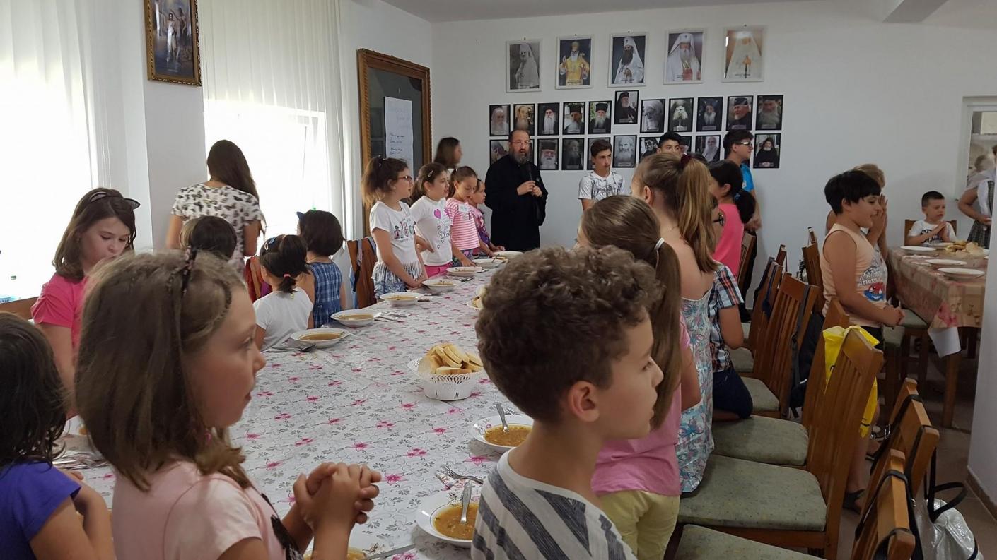 Sâmbătă, 19 august 2017, copiii au învățat cum să se pregătească pentru ziua Domnului, pentru întâlnirea cu Hristos, învățând de la doamna Verginia Savin cum se fac prescurile și care este rostul lor. Cu nespusă bucurie au frământat, au modelat și au pus pecetea Mântuitorului pe boțul de aluat ce devine prescură, jertfa dăruită Domnului în fiecare Sfântă Liturghie. Ziua s-a încheiat cu Sfânta Spovedanie, Taina pregătitoare a întâlnirii minunate cu Hristos în Liturghia duminicală.