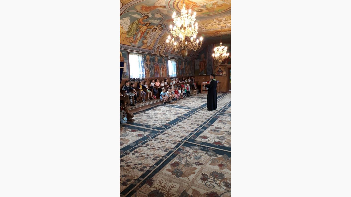 Lucrările realizate de copii au fost expuse duminică, 14 iulie 2019, în biserică, fiind admirate şi apreciate de credincioşi, iar copiii, alături de părinţi, au participat la Sfinta Liturghie, unde s-au împărtăşit cu Trupul şi Sângele Domnului.