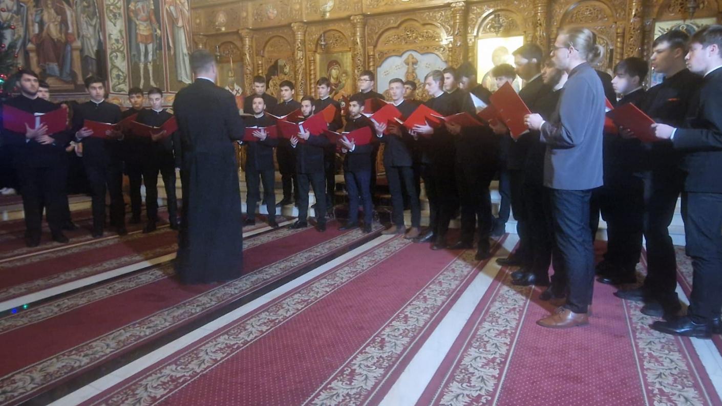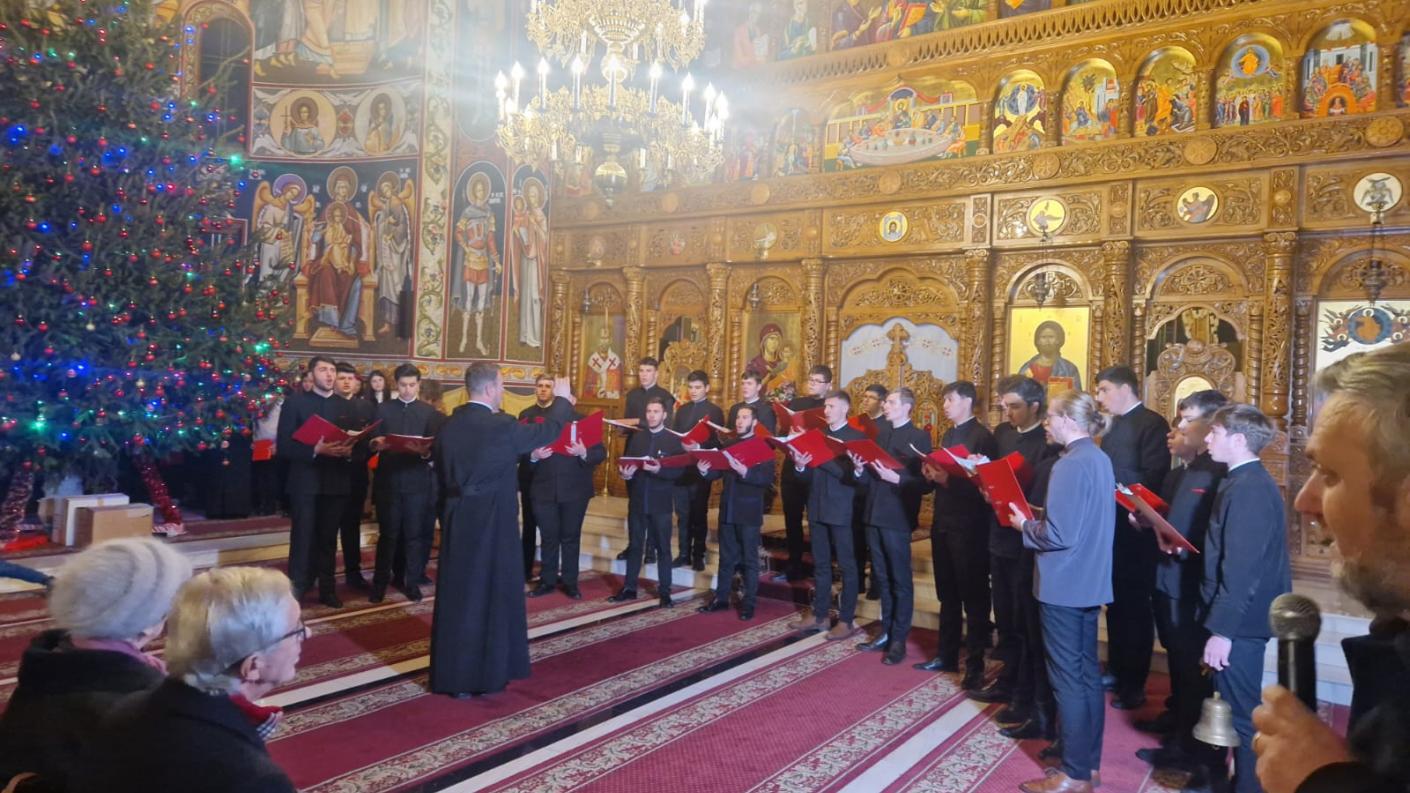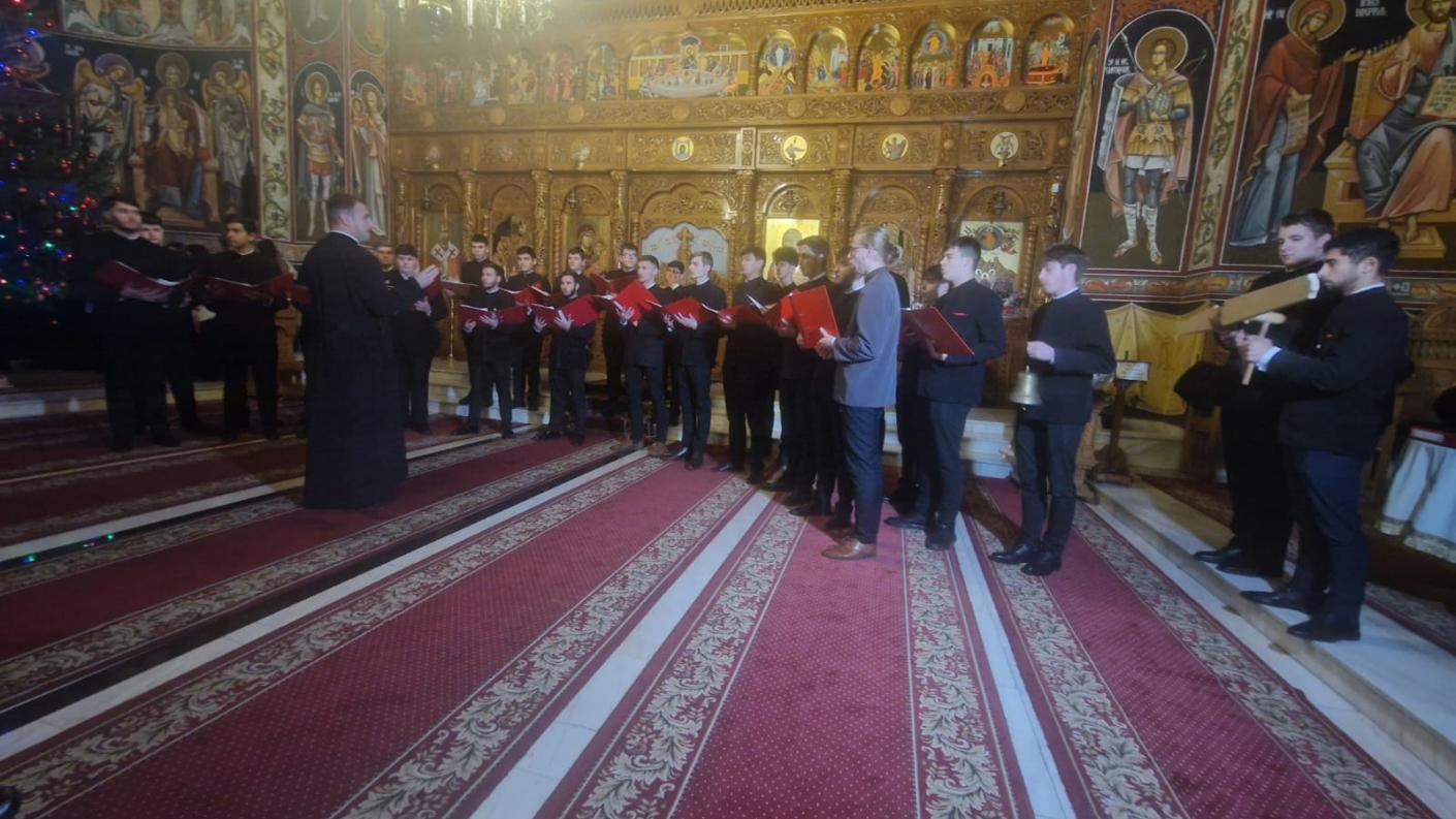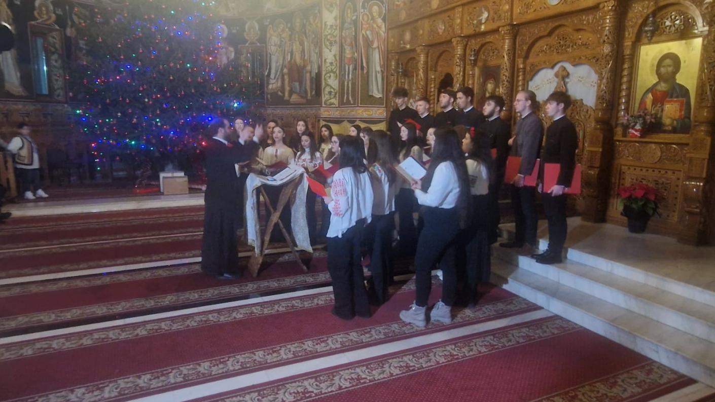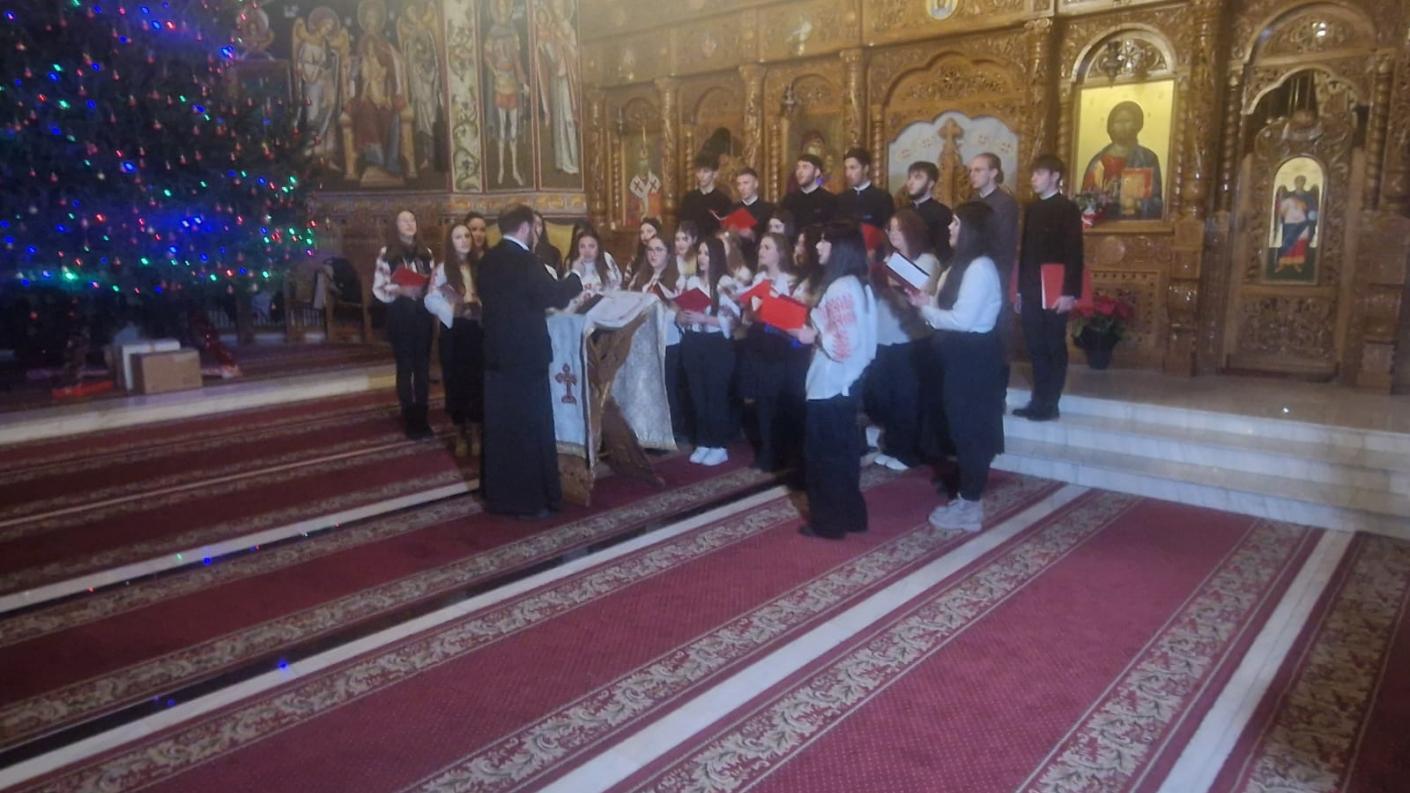 Conform unei tradiții vechi de un deceniu, în seara zilei de Sfântul Ierarh Spiridon, părintele paroh Sînică Palade, odinioară director al seminarului romașcan, părintele Vasile Iancu și părintele Cătălin Andrei Găitanariu adună dreptmăritorii creștini păstoriți la un concert de colinde, susținut de elevii Liceului Teologic „Episcop Melchisedec” Roman și de elevii școlii din localitate. Cele trei cadre didactice care au coordonat pregătirea colindătorilor, pr. prof. Samoilă Vlad Nicolae, arhid. prof. Tecucianu Alexandru Ioan și prof. Tiu Elena au prezentat un repertoriu variat, de aproape două ore, ce a încântat asistența, tinerii colindători realizând o veritabilă cateheză muzicală despre nașterea Domnului Iisus Hristos în Betleemul Iudeii, din care nu au lipsit piese liturgice specifice marelui praznic împărătesc, prelucrări ale unor colinde populare românești sau piese polifonice scrise de autori consacrați ai muzicii corale. Acustica excepțională a monumentalei bisericii sfințite în 2013 de către Înaltpreasfințitul Ioachim, Arhiepiscopul Romanului și Bacăului, a înveșmântat glasurile celor aproape șaptezeci de elevi colindători, într-o inspirată simfonie a vârstelor creștinilor închinători ai mărețului locaș, ce au petrecut o minunată seară duhovnicească.