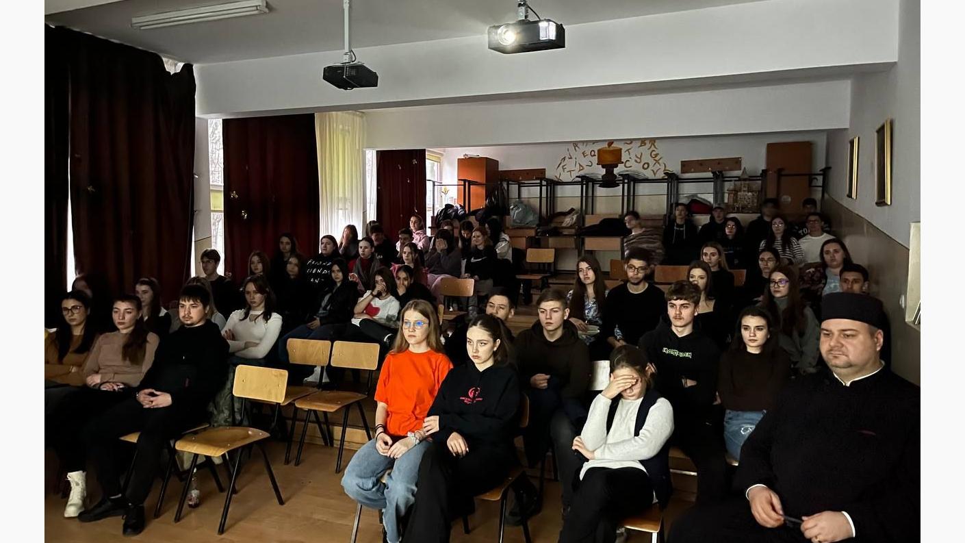 Filmul „Vindecarea fricii” a fost difuzat în amfiteatrul liceului și a fost vizionat de aproximativ 60 de tineri. Producția a evidențiat viața și activitatea Sfântului Ierarh Luca al Crimeii. În urma vizionării, a existat o discuție inițiată de pr. prof. Justinian Cimpoeru, slujitor al Paraclisului „Acoperământul Maicii Domnului” din cadrul instituției de învățământ, care a explicat importanța și rolul sfinților în viețile tinerilor creștini. În cadrul discuției, a fost subliniată nevoia unor repere morale care să ghideze tinerii în alegerea drumului corect al vieții. Astfel de activități au scopul de a aduce împreună tinerii pentru a petrece un timp de calitate împreună și pentru a afla răspunsuri la problemele pe care le întâmpină în această perioadă a vieții lor.