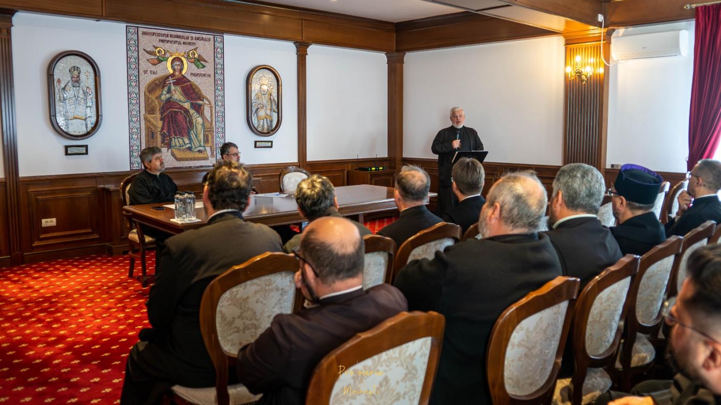 Părintele protopop Costel Mareș a deschis lucrările ședinței și a anunțat ordinea de zi, punctul central fiind conferința cu tema „Aniversarea a 100 de ani de la ridicarea Bisericii Ortodoxe Române la rangul de Patriarhie”, susținută de părintele Daniel Prepeliță de la Parohia „Sfântul Spiridon” din Comănești. Prezentarea a evidențiat momentele istorice marcante din evoluția Bisericii Ortodoxe Române și importanța acestei aniversări centenare pentru identitatea spirituală a poporului român.