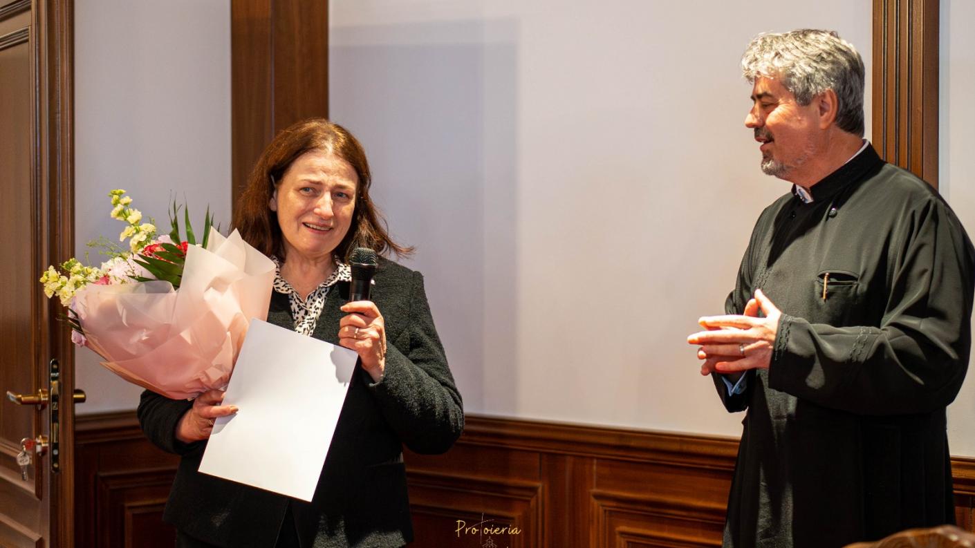 Un moment emoționant al întâlnirii a fost oferirea unei diplome de recunoștință doamnei Mirinica Cristinoiu, casier și magazioner în cadrul Protopopiatului Moinești, în semn de apreciere pentru întreaga activitate desfășurată cu devotament în slujba instituției.