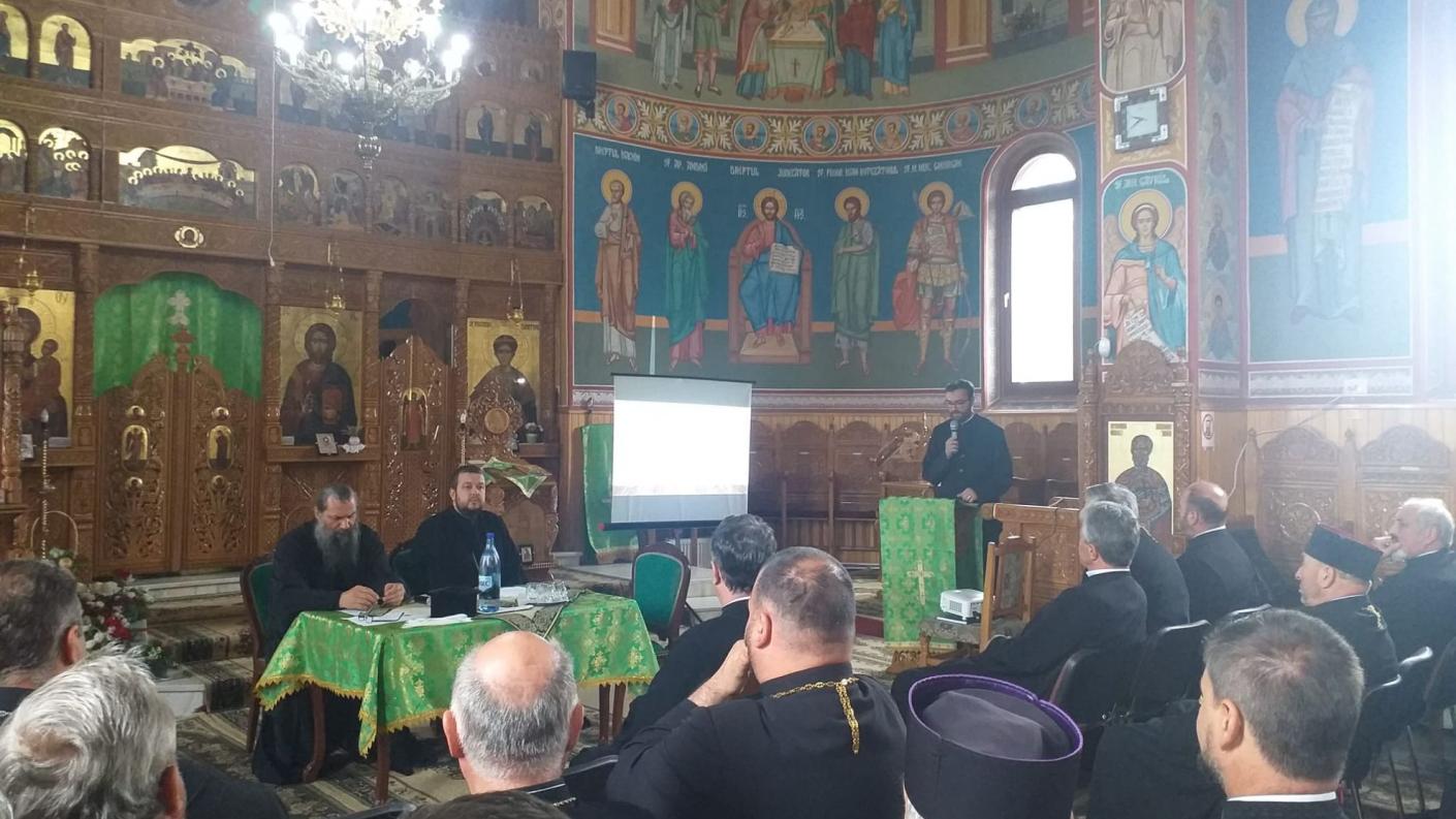 În deschiderea ședinței PC. Pr. Protopop Dan-Alexandru Antoce și-a exprimat bucuria de a-l avea în mijlocul preoților din Protoieria Roman pe părintele vicar. În contextul „Anului omagial al pastorației persoanelor vârstnice și Anul comemorativ al imnografilor și cântăreților bisericești”, PC. Pr. Bozieanu Alexandru Mircea, de la Parohia Gâdinți, a susținut conferința „Pastorația persoanelor vârsnice – misiune, recunoștință și provocare”. Preacuviosul Părinte Arhim. Pimen Costea l-a felicitat pe părintele conferențiar pentru lucrare și a prezentat câteva aspecte personale referitoare la pastorația bătrânilor, dând apoi cuvântul și altor preoți, discutându-se prin prisma experienței acumulate de către fiecare în parohiile în care activează.