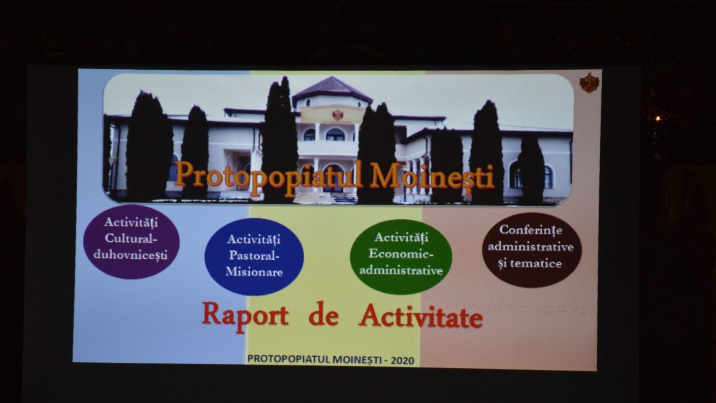Primul moment pe ordinea de zi l-a constituit prezentarea de către părintele protopop Costel Mareș a raportului, în format PowerPoint, al tuturor activităților și proiectelor economice, pastoral-misionare și cultural-filantropice desfășurate în anul 2020 în Protopopiatul Moinești.
