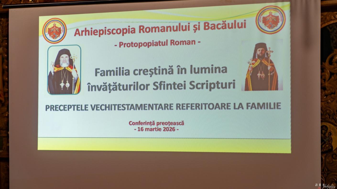 Apoi, cei 120 de preoți din Protopopiatul Roman au participat la conferința ”Familia creștină în lumina Sfintelor Scripturi. Preceptele vechi testamentare referitoare la familie”, susținută de preotul Ionuț Grecu, slujitor la Parohia „Precista Mică” din Roman, în contextul Anului omagial al pastorației familiei creștine.