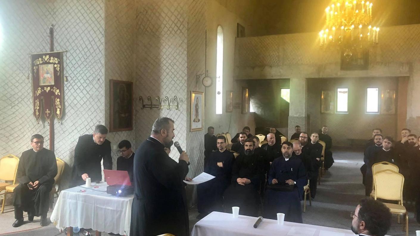 Părintele Ioan Bârgăoanu, protopop de Oneşti, a transmis mesajul de binecuvântare al Înaltpreasfinţitului Părinte Ioachim, Arhiepiscopul Romanului şi Bacăului, tuturor preoţilor prezenţi și a adus la cunoștință câteva dintre aspectele adiminstrative și duhovnicești ale protopoiatului Onești. Dintre acestea amintim: procesiunea cu icoana Maicii Domnului de la Mănăstirea Giurgeni din perioada 9-13 august 2019; desfășurarea proiectului social “Masa bucuriei” la sediul propopiatului; cât și organizarea Concursului anual de “Toacă și ie moldovenească” din ziua de 20 august 2019.