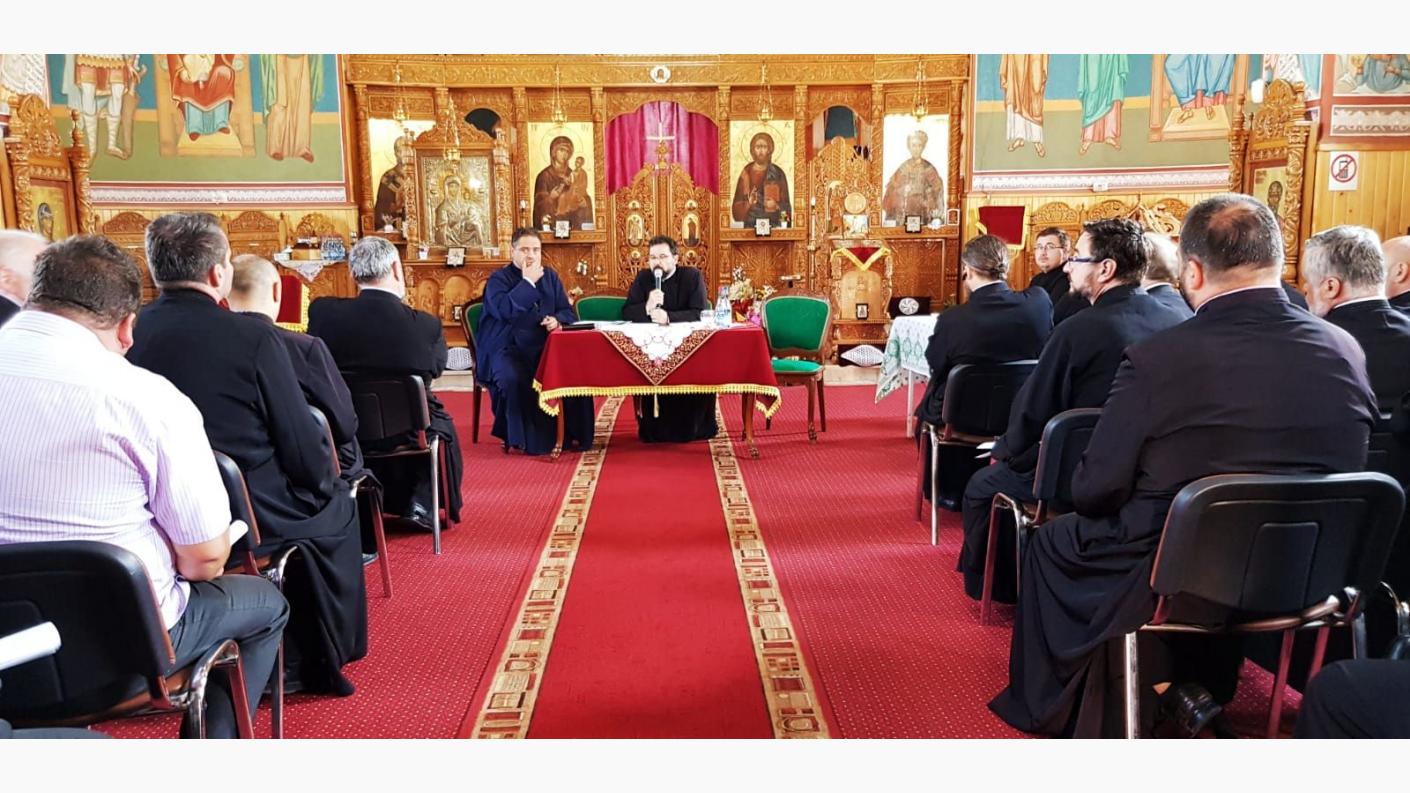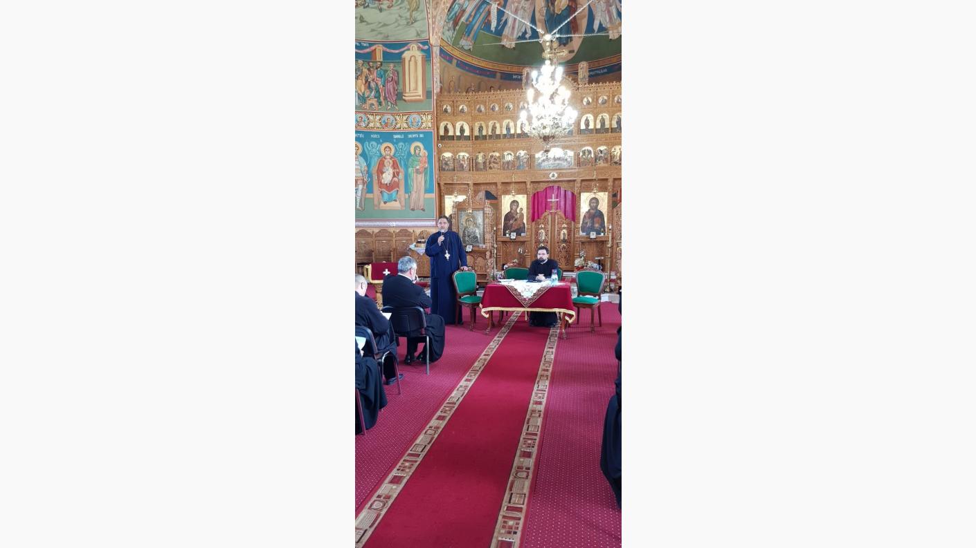 Întâlnirea a debutat cu prezentarea de către părintele protopop Dragoș Munteanu a temelor aflate în dezbatere pe ordinea de zi, apoi, părintele consilier Valentin Băltoi, delegatul Centrului eparhial la acest eveniment, a transmis binecuvântarea Înalpreasfințitului Părinte Ioahim și purtarea sa de grijă adresate tuturor celor prezenți.