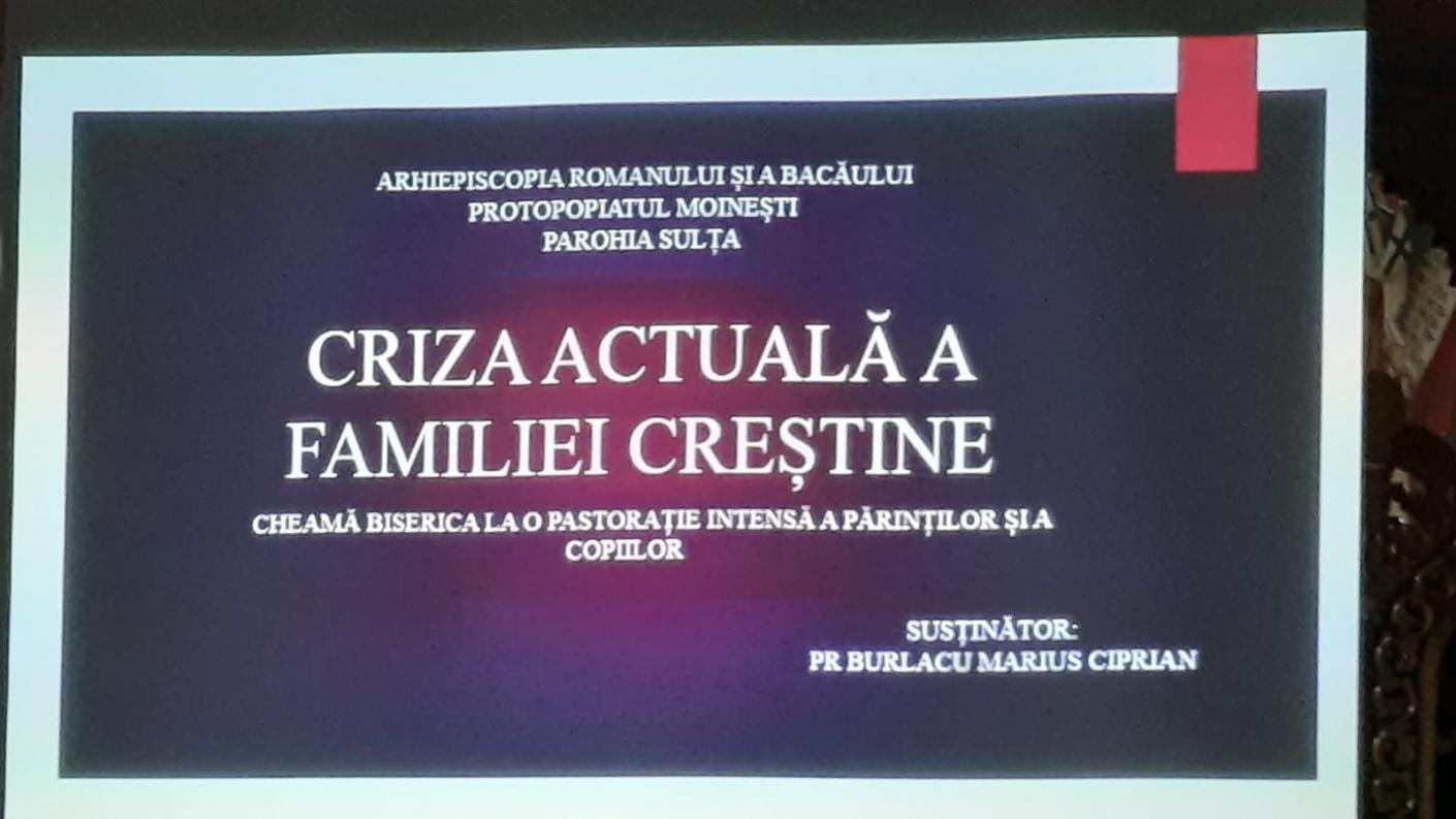 La ședința din ziua de 3 noiembrie, părintele Burlacu Marius, de la Parohia Sulța a prezentat într-un format PowerPoint lucrarea cu titlul „Criza actuală a familiei creștine cheamă Biserica la o pastorație intensă a părinților și a copiilor” atingând în prezentarea acesteia probleme precum preocuparea Bisericii pentru pastorația părinților și copiilor, familia creștină, impactul distructiv al prozelitismului religios, precum și identificarea de soluții care să sprijine activitatea Bisericii de pastorație a părinților și copiilor.