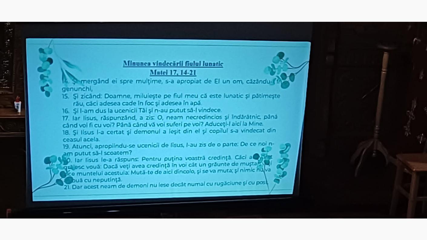 Având în vedere că se derulează anul dedicat pastorației și îngrijirii bolnavilor, respectiv anul omagierii sfinților doctori fără de arginți, s-a propus ca în cadrul întâlnirilor de anul acesta, să fie abordată problematica aceasta prin cateheză, vizionare de filme religioase specifice și dialoguri interactive. Programul întâlnirii, la care au participat aproximativ 40 de credincioși, a cuprins: rugăciunea de început, prezentarea în format power-point a catehezei cu titlul: "Îngrijirea copiilor bolnavi - responsabilitate și implicare creștină", învățarea unor pricesne și vizionarea unui film moralizator. La final întâlnirii, cei prezenți au socializat și au servit prăjituri și răcoritoare.