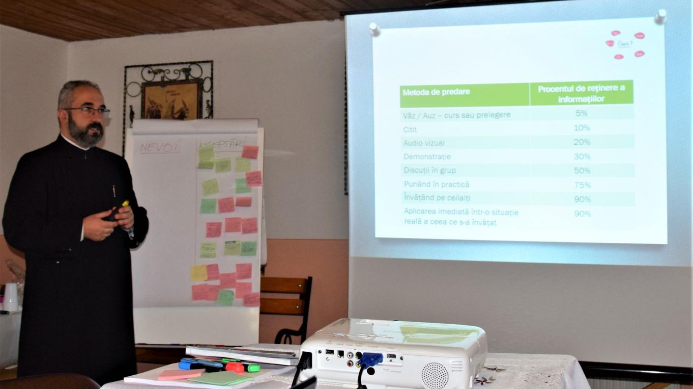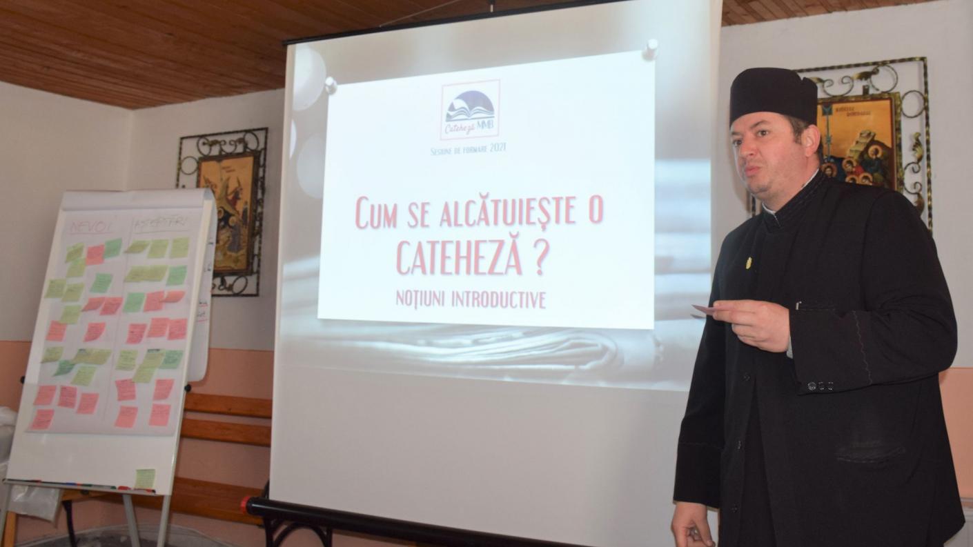 Sub îndrumarea părintelui inspector Bogdan Racu, preoţii au rememorat pentru început partea teoretică, modul cum se alcătuieşte o cateheză, în care a fost inclus scenariul propriu-zis al catehezei, dar și câteva materiale auxiliare. Partea practică a formării a constat în alcătuirea şi susţinerea unei cateheze demonstrative cu tema „Aștept învierea morților și viața veacului ce va să fie”, care se încadrează în tema Anului comemorativ al celor adormiți în Domnul, proclamat în Patriarhia Română.
