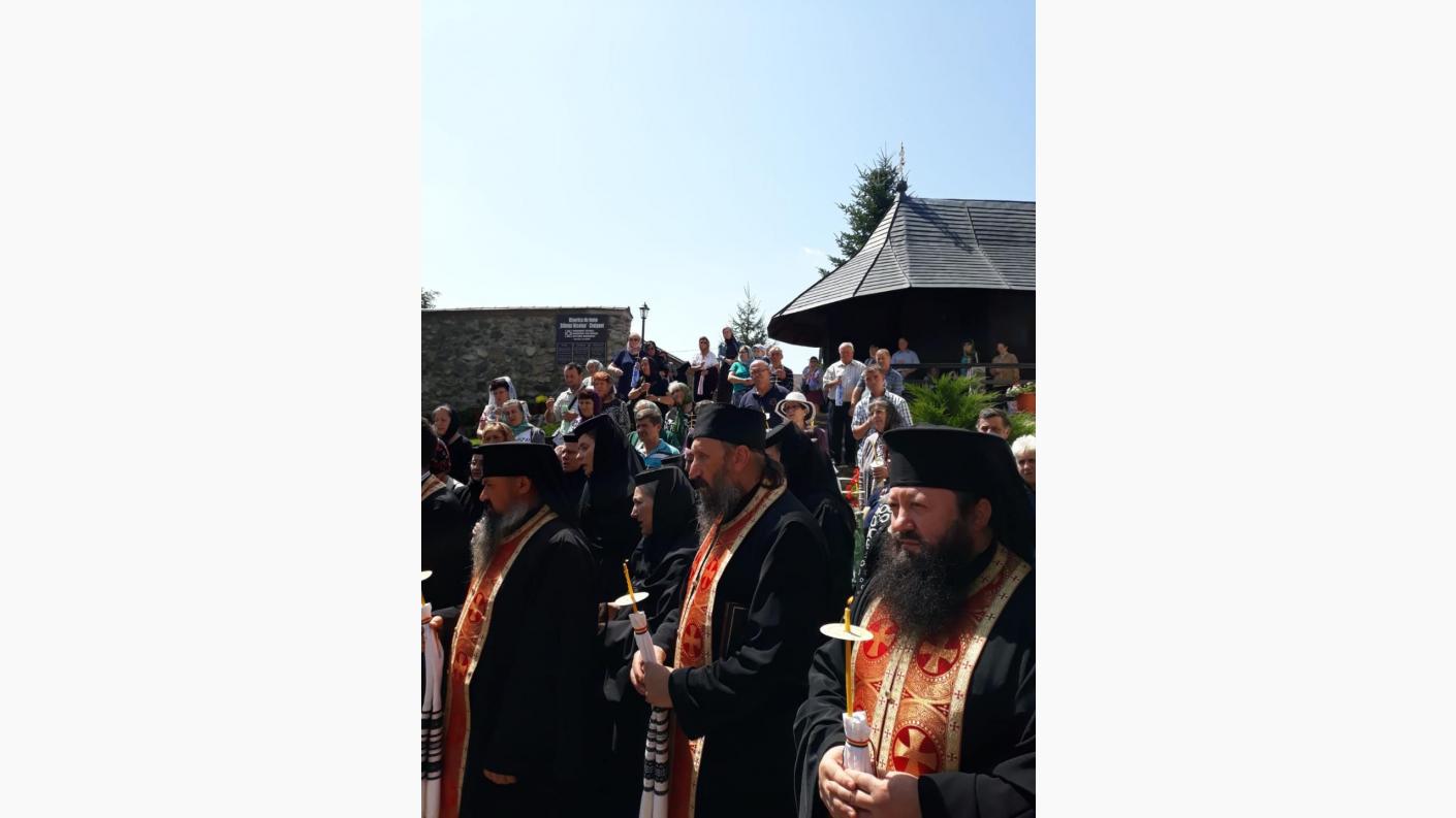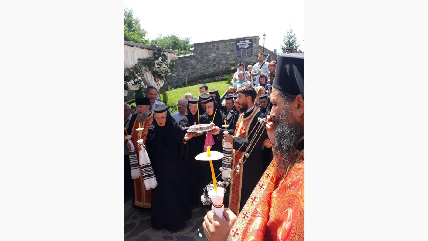 După terminarea Sfintei Liturghii, soborul preoților, obștea mănăstirii, dimpreună cu credincioșii prezenți au mers la mormântul părintelui Emilian unde a fost săvârșită slujba Parastasului.