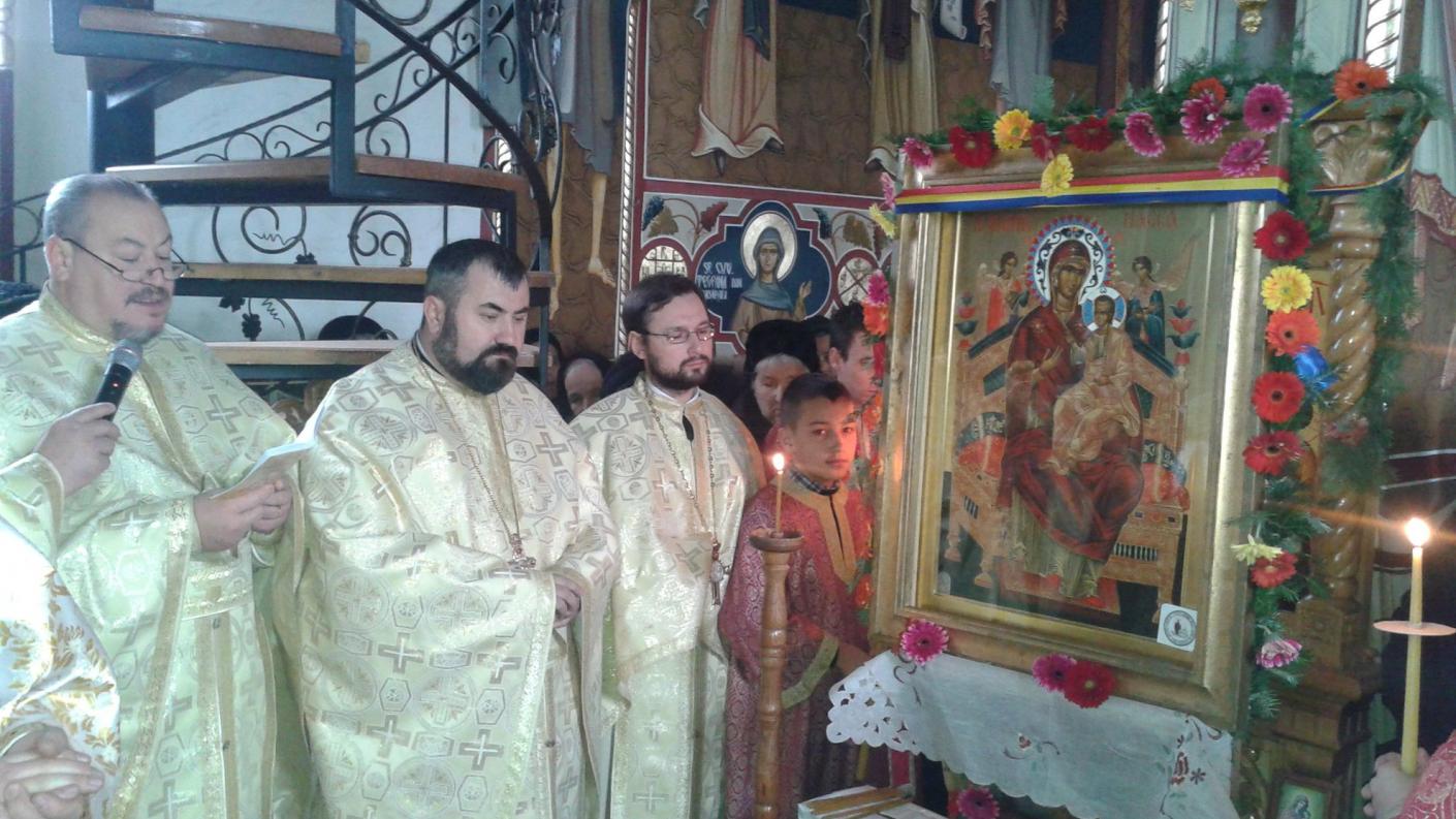 În ziua hramului, după citirea Acatistului Sfintei Născătoare de Dumnezeu Izbăvitoarea de boli, un sobor de 18 slujitori a oficiat Sfânta Liturghie, sub protia pr. vicar-administrativ arhim. Pimen Costea, alături de care s-au aflat pr. Constantin Alupei, protoiereu al Protopopiatului Onești, și membri ai administrației eparhiale, delegați ai PS Părinte Episcop Ioachim Băcăuanul.