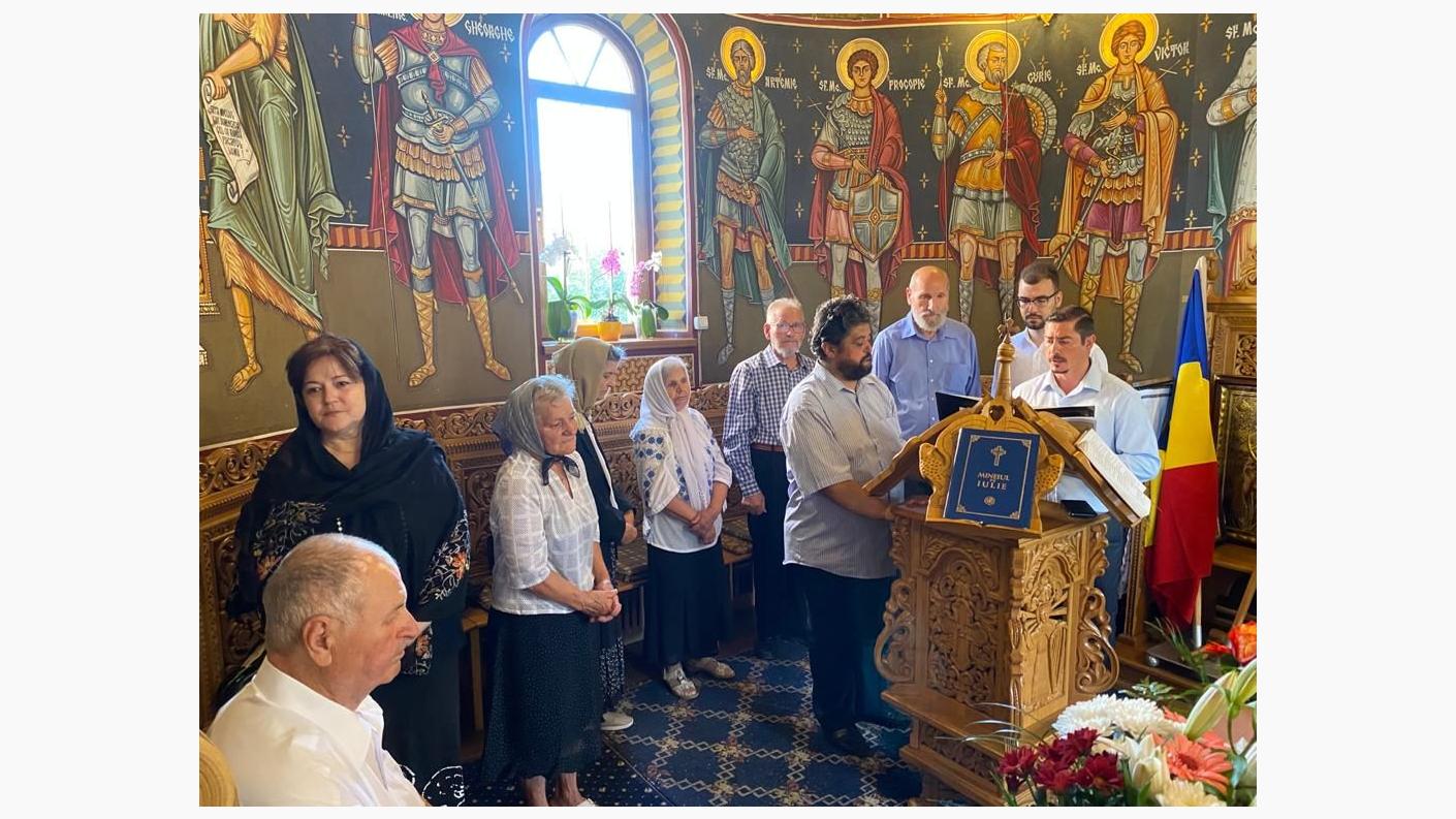 Cu binecuvântarea IPS Ioachim, Arhiepiscopului Romanului și Bacăului, Pr. Ioan Bârgăoanu, Protopop al Protopopiatului Onești, a oficiat Sfânta Liturghie alături de un sobor de preoți. Bucuria comuniunii liturgice a fost intensificată de prezența Sfintelor Moaște ale Sfântului M.Mc. Pantelimon, care au fost aduse de la Biserica Buna Vestire – Răducanu, de către Pr. Paroh Vasile – Ioan Panțâru, fiind puse spre închinare până în data de 28 iulie a.c.