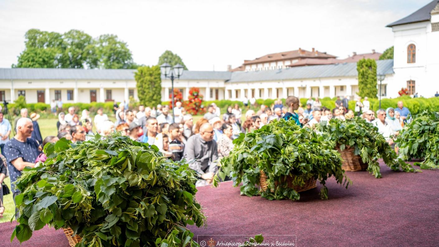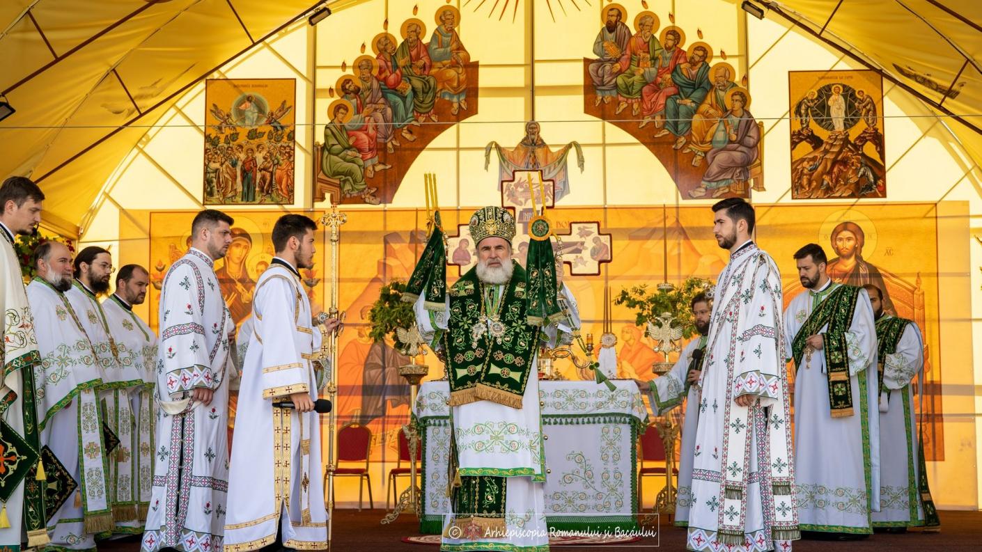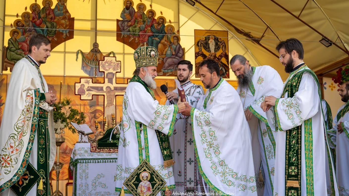 Sărbătoarea Rusaliilor a fost serbată la Roman pe o scenă amenajată la interiorul curții Centrului Eparhial, în latura de NE a Catedralei Arhiepiscopale „Sfânta Cuvioasă Parascheva” prin oficierea de către Părintele Arhiepiscop Ioachim a Sfintei și Dumnezeieștii Liturghii. Împreună cu Înaltpreasfinția Sa a slujit părintele arhimandrit Pimen Costea, vicar eparhial, alături de preoți și diaconi ai Catedralei romașcane. În cadrul Sfintei Liturghii, diaconul Florin Iulian Olariu a fost hirotonit în treapta de preot pe seama Parohiei Motoșeni din Protopopiatul Sascut.