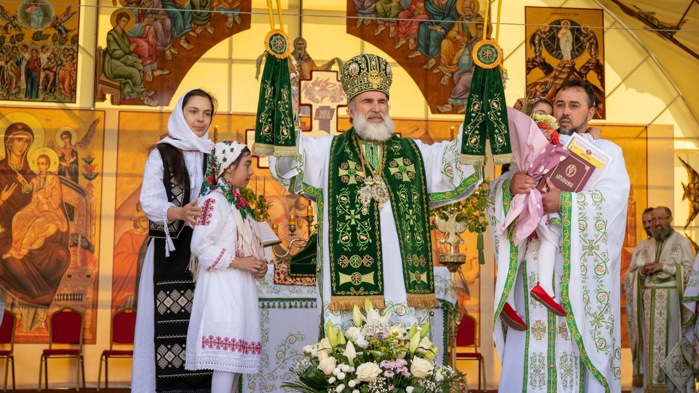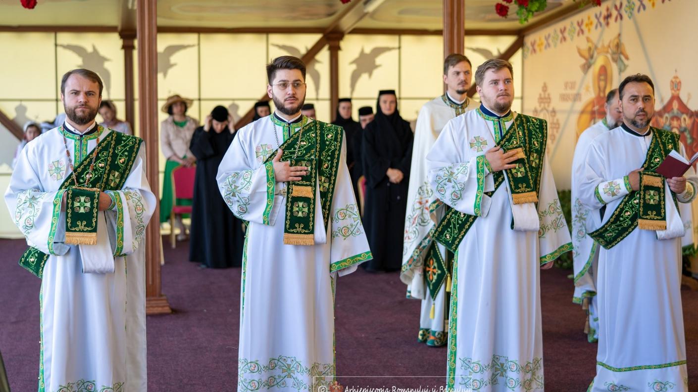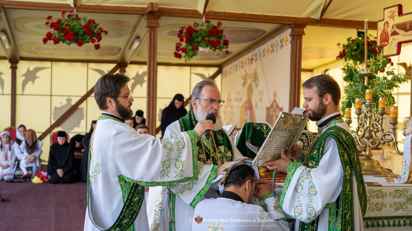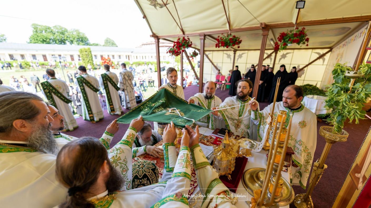 Sărbătoarea Rusaliilor a fost serbată la Roman pe o scenă amenajată la interiorul curții Centrului Eparhial, în latura de NE a Catedralei Arhiepiscopale „Sfânta Cuvioasă Parascheva” prin oficierea de către Părintele Arhiepiscop Ioachim a Sfintei și Dumnezeieștii Liturghii. Împreună cu Înaltpreasfinția Sa a slujit părintele arhimandrit Pimen Costea, vicar eparhial, alături de preoți și diaconi ai Catedralei romașcane. În cadrul Sfintei Liturghii, diaconul Florin Iulian Olariu a fost hirotonit în treapta de preot pe seama Parohiei Motoșeni din Protopopiatul Sascut.