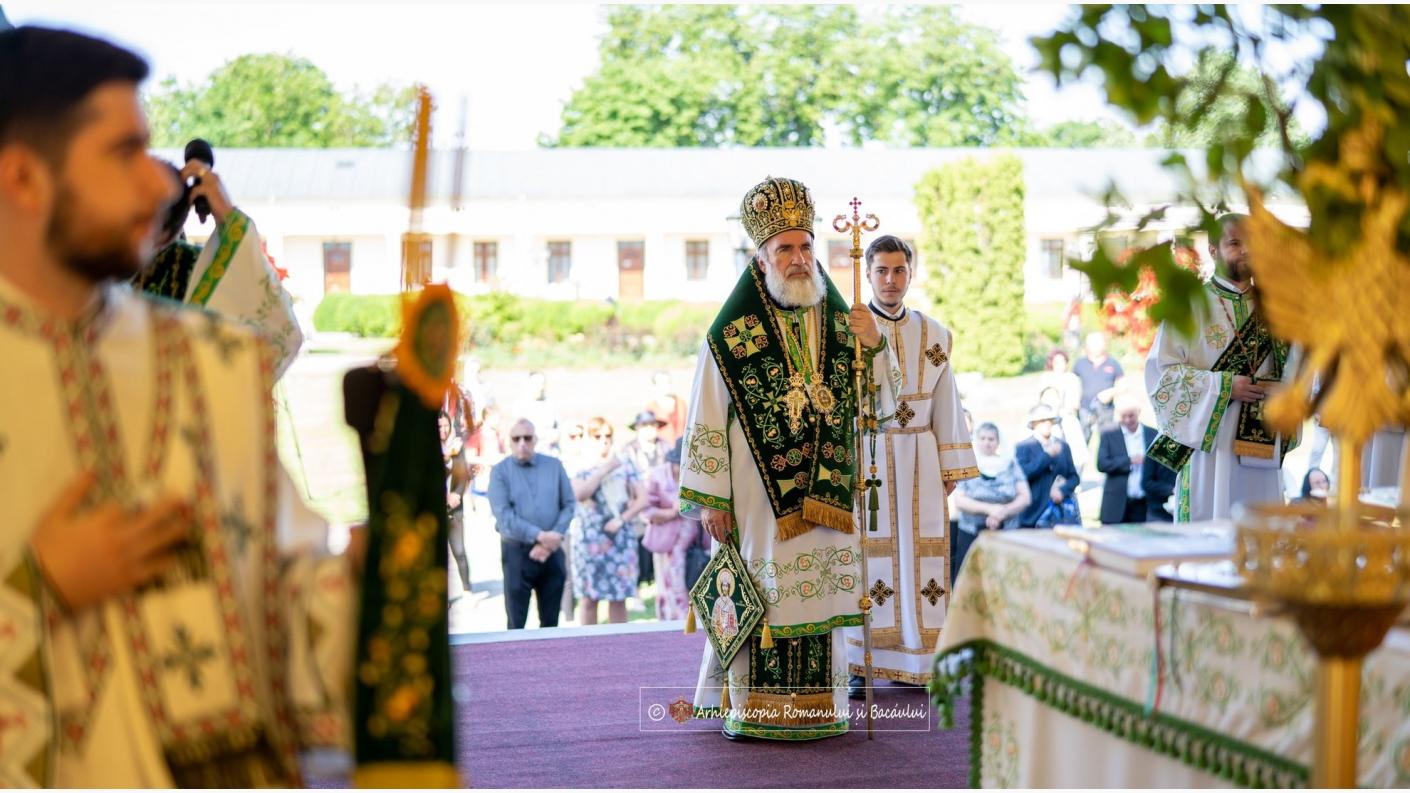 Pogorârea Duhului Sfânt, sărbătoare care încununează suita de praznice împărătești generate de Învierea Mântuitorului Iisus Hristos din morți, a fost serbată la Roman prin oficierea de către Înaltpreasfințitul Părinte Arhiepiscop Ioachim a Sfintei Liturghii urmată de Vecernia plecării genunchilor și apoi de sfințirea stâlpărilor de tei.
