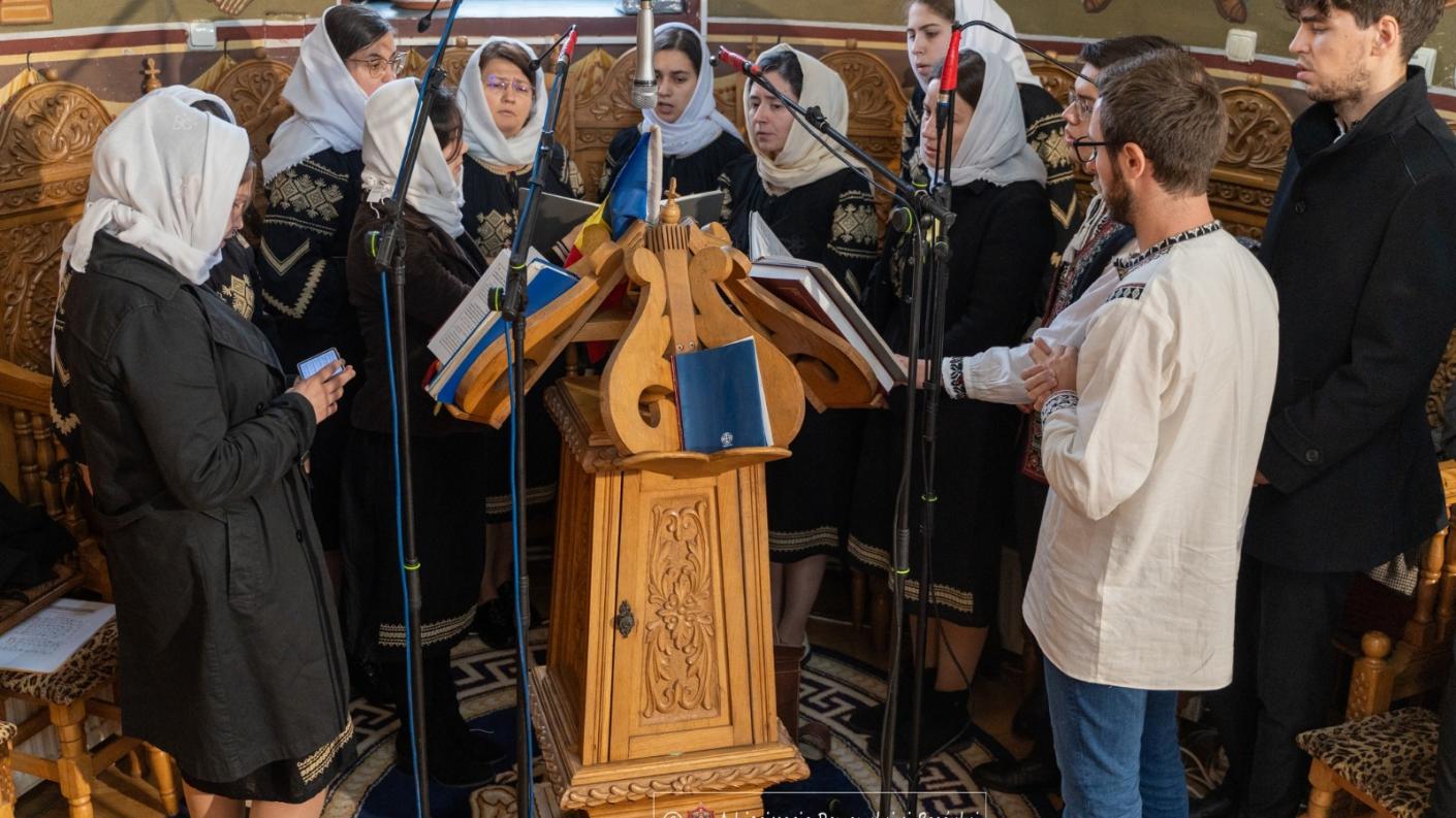 Răspunsurile liturgice au fost oferite de Corul psaltic Filomelos, dirijat de doamna profesor Paula Cautiș.