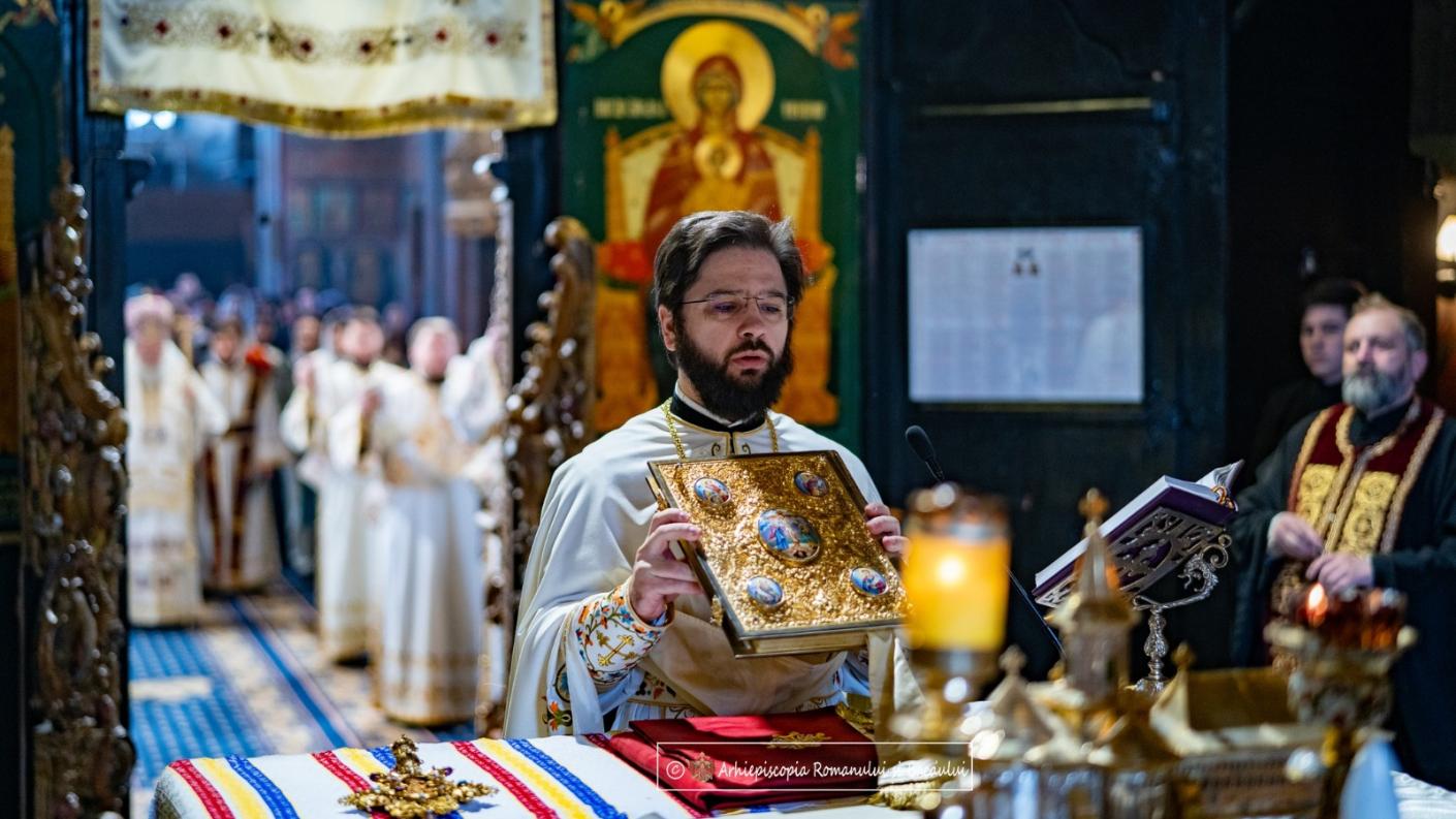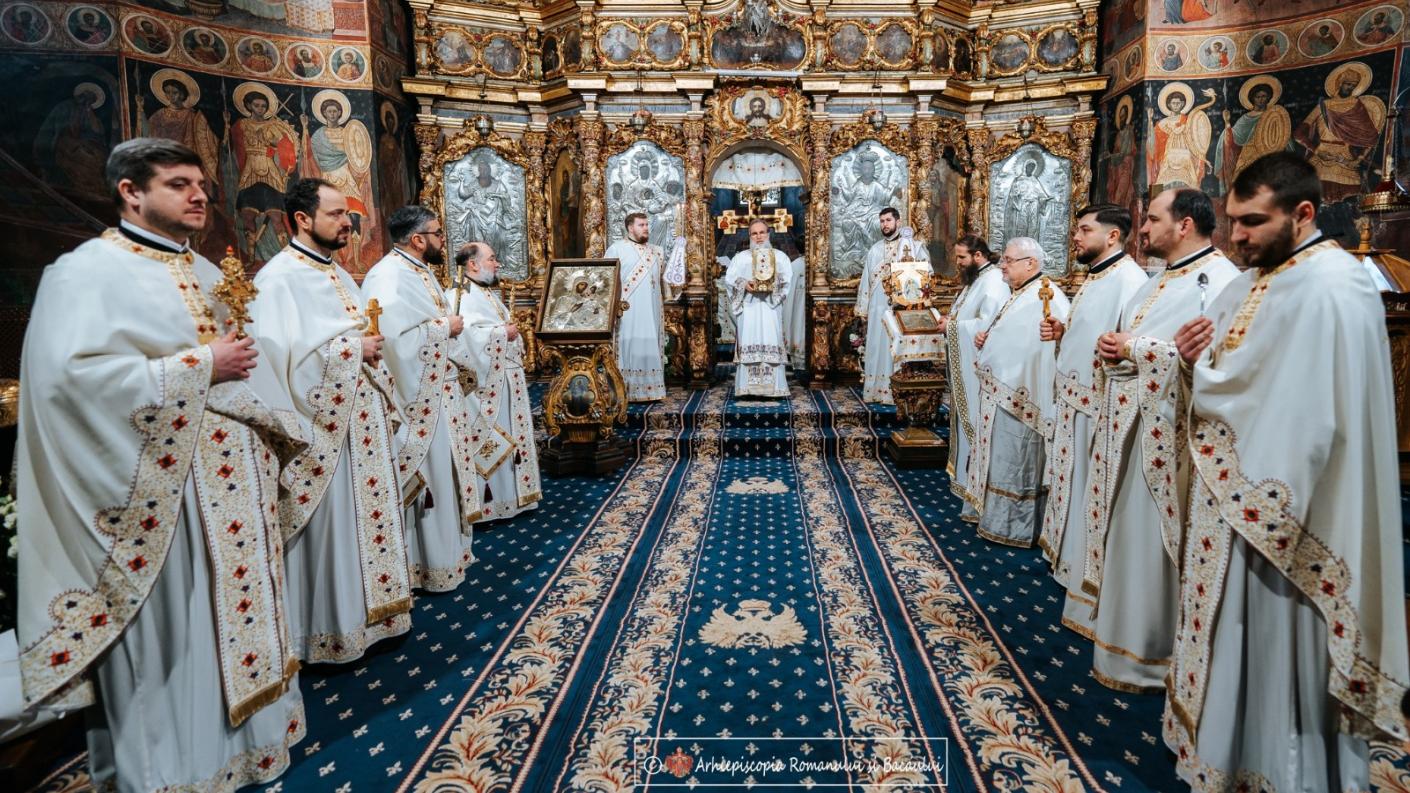 În Duminica Lăsatului sec de brânză Înaltpreasfințitul Părinte Ioachim, Arhiepiscopul Romanului și Bacăului, înconjurat de un sobor de preoți și diaconi, a săvârșit Sfânta Liturghie în Catedrala arhiepiscopală „Sfânta Cuvioasă Parascheva” din Roman.